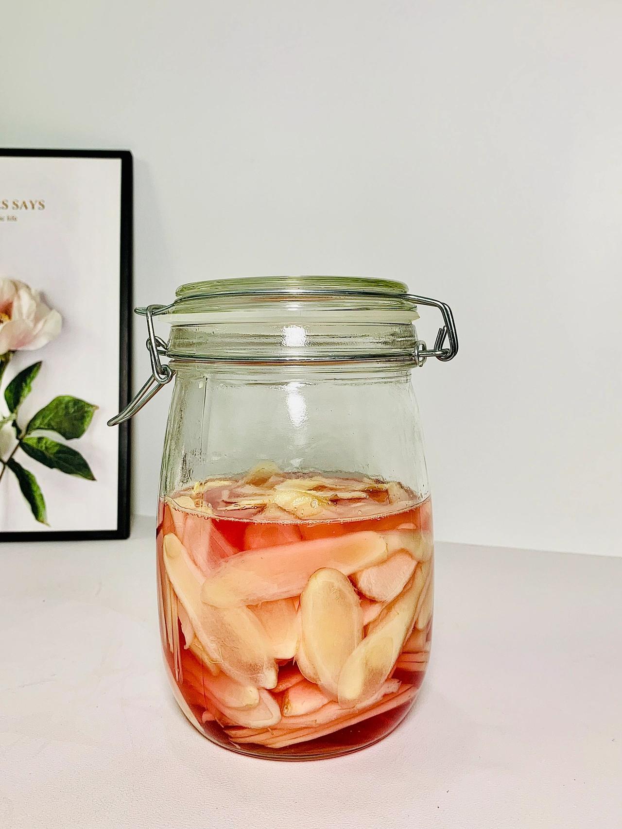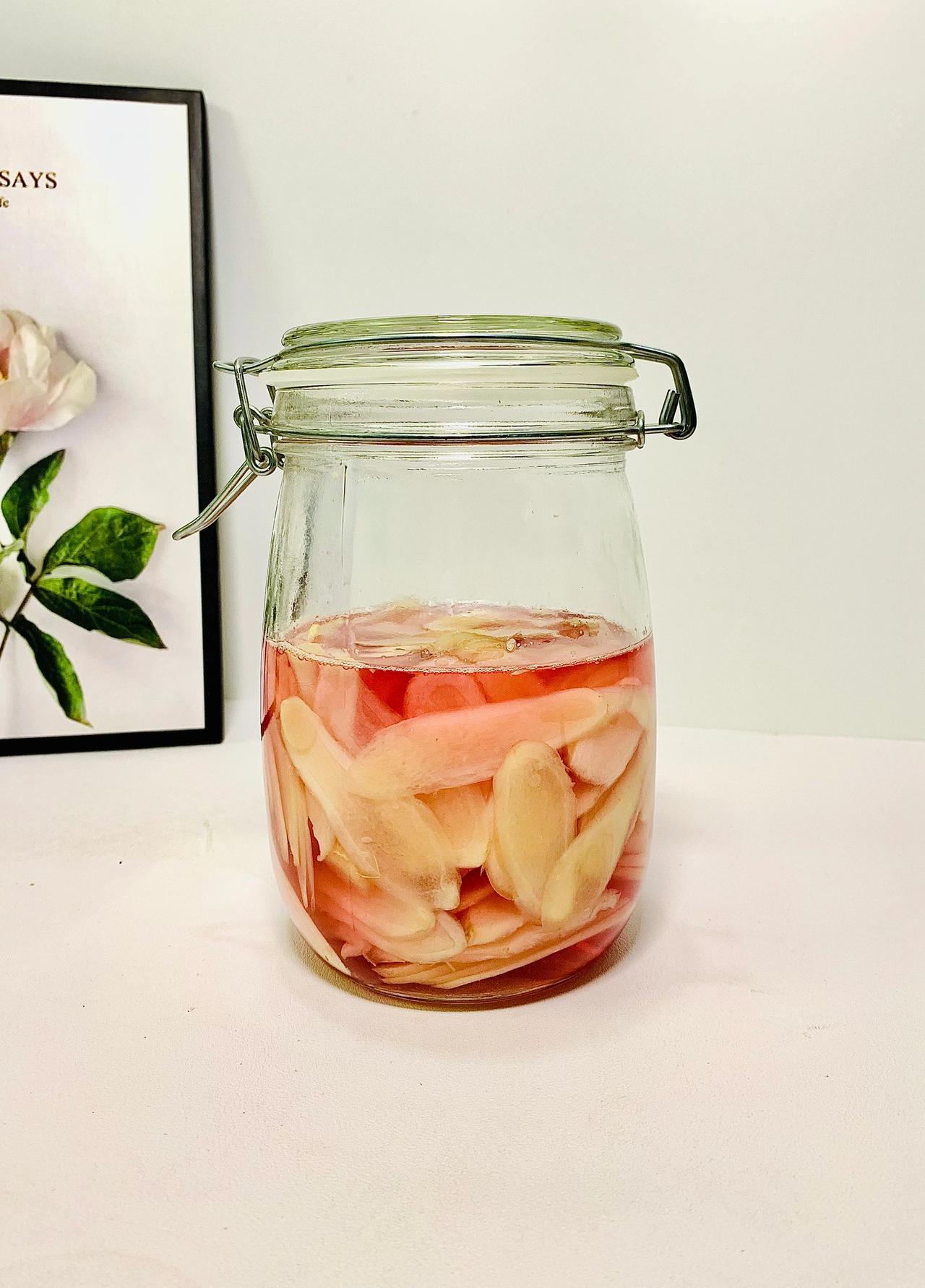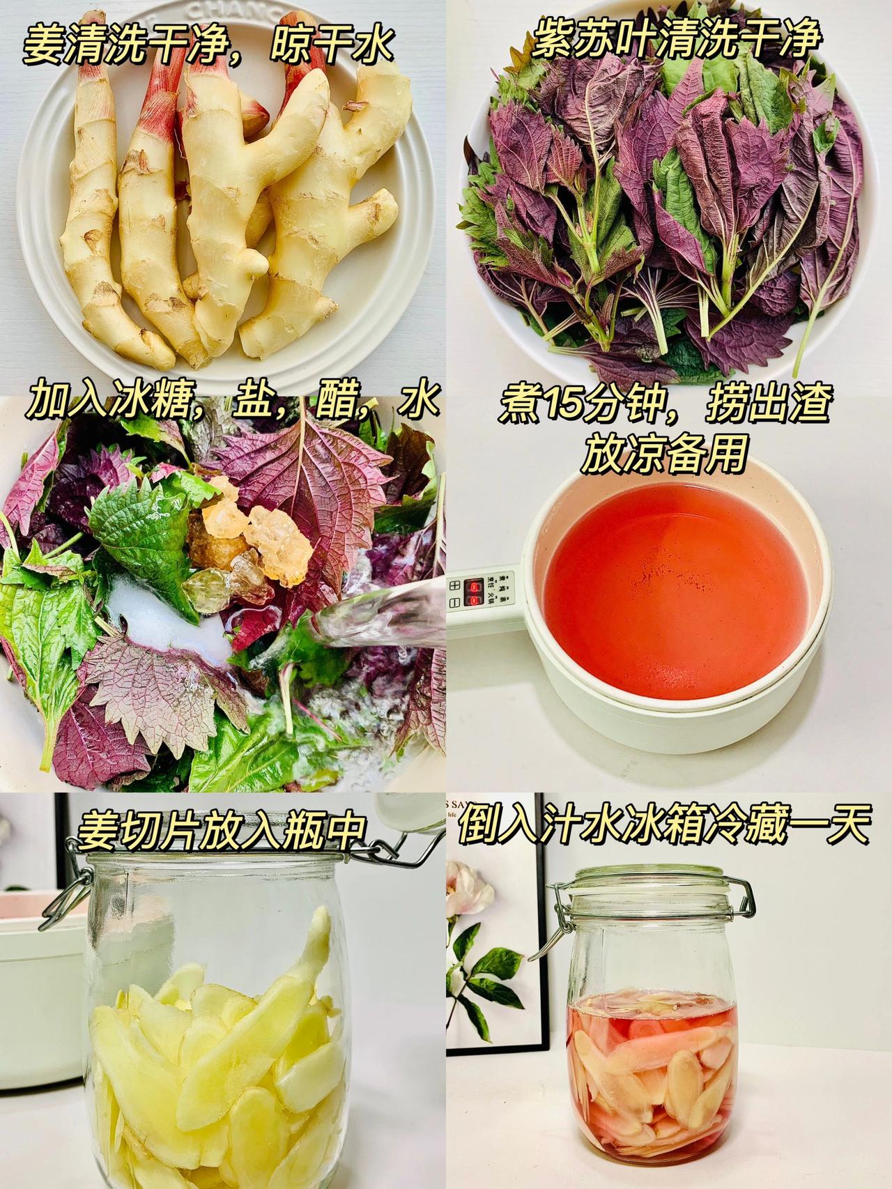 婆婆做的糖醋紫苏姜绝了!!我能吃一辈子!! 冬吃萝卜夏吃姜,又到了一年最适合吃生姜的季节! 生姜味辛,性微温,具有发汗解表,温中止呕,温肺止咳的效果,主治外感风寒畏寒,呕吐风寒,咳嗽,腹痛腹泻等。 特别是上班族怕冷的姐妹,在空调房待久了,加上长期久坐不动,特别需要散除体内寒气,以免体寒生病或痛经。 婆婆每年都会做糖醋紫苏泡姜,喝白粥的时候真的好过瘾,很酸甜脆口,又开胃下饭! 食材:嫩姜一斤,紫苏叶100克,白醋150ml,冰糖150克,盐50克 步骤:1、嫩姜清洗干净,晾干水分,切成薄片,放盐抓至嫩姜变软出水,挤掉水分; 2、紫苏叶清洗干净,放入锅中,加入冰糖、盐、白醋、水,煮15分钟,冰糖融化,水变红,捞出紫苏叶,晾干汁水备用; 3、准备无油无水的干燥瓶子,把姜片放入瓶子中,加入放凉的紫苏水,密封冷藏一天以上。 小贴士:姜不适合在晚上食用,最好白天吃噢! 另外要注意的是,不要从冰箱拿出来就直接吃,太凉了对胃不好。可以提前装一些出来,不凉了再吃!还可以捞出姜和汁水,冲开水喝,酸酸甜甜的,暖心暖胃,特别好喝!