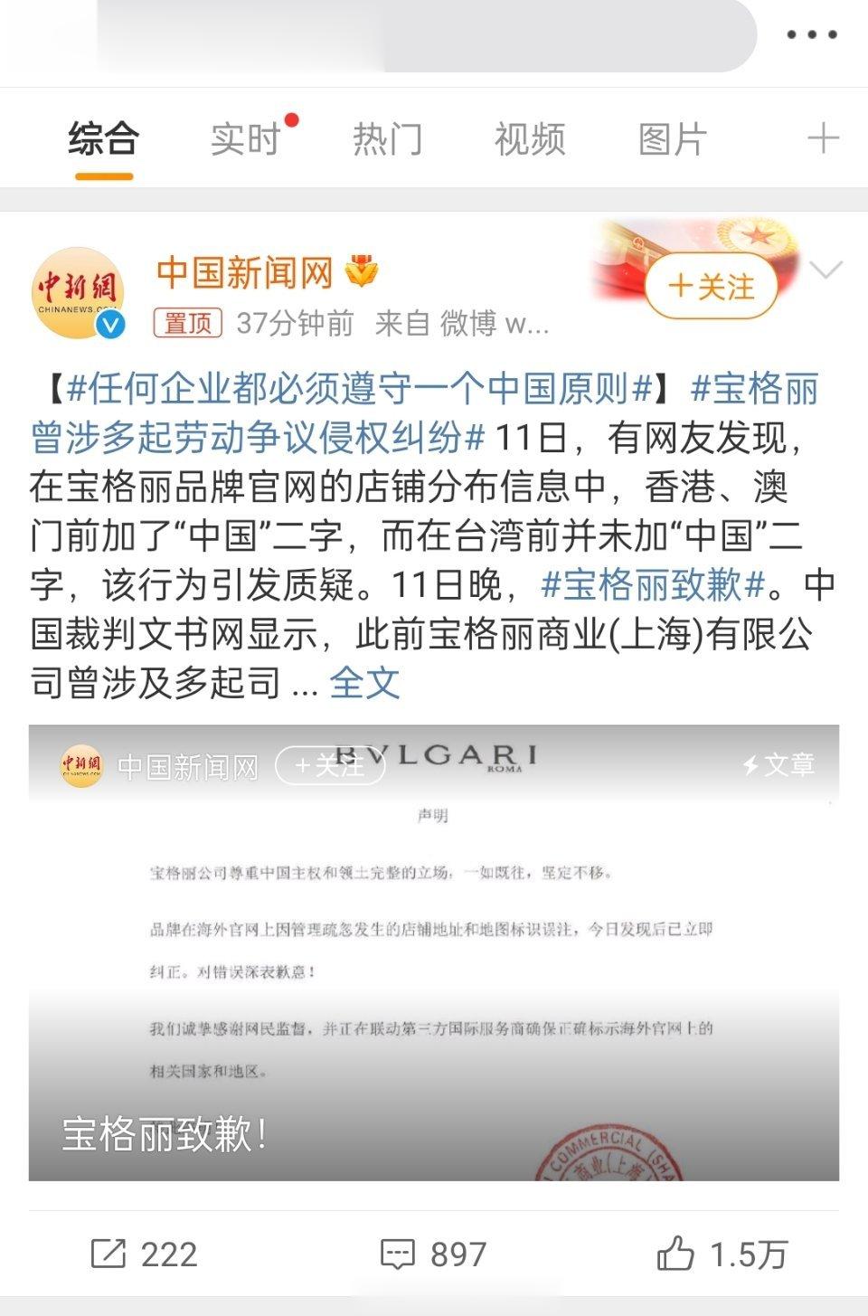 #宝格丽道歉别弄成专供中国大陆# 对比中国新闻网匆匆下场,这次人民日报点评还是有担当的。就是,道歉声明外网也来一个,别搞成了中国特供![微笑]