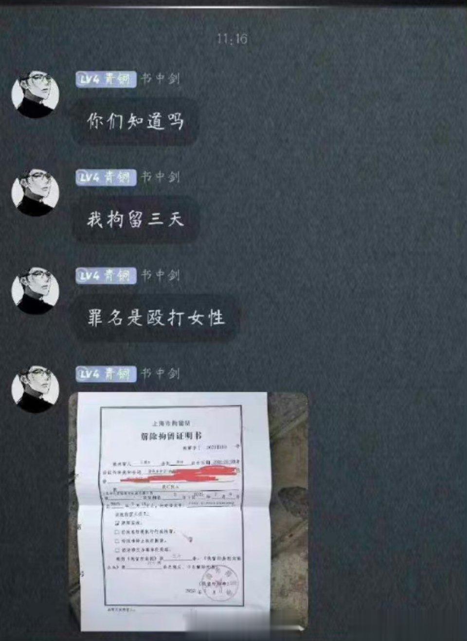 拘留三天是真的,理由是殴打他人。小伙在群里称不承认单方面殴打,只是为了抢回手机。他也不承认事先知道她精神异常和为了吸引流量和关注。我第二次为他发帖,不为指责处置他的警方。而是我真心觉得他有点冤,看看有没有哪位法律人士为他援助一下。做的不多,不知道能不能抚平一下他内心的愤懑。请手下留情。[作揖][作揖][作揖]