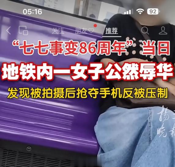 #女子被砸死亡当晚嫌疑人共抛物3次# 这一次大家意见挺统一,认为即使精神病,也不能胡作非为,监护人要负起责任。但上一次77事变纪念日当天,一个表面看不出精神异常的女子,在地铁上说着侮辱国家民族,赞美日本纳 粹军国主义的话,她身边也没人陪护,还不能制止和反击…这就有些离谱。
