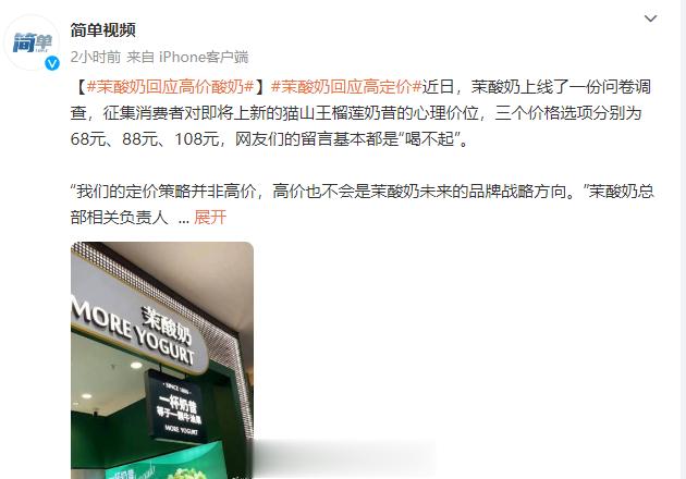 #茉酸奶回应高价酸奶# 茉莉奶、钟薛高…国产品牌定价稍稍高点,为啥媒体就蜂拥而上围猎?国外奢侈品动辄上万、几十万、百万一件,却无媒体指摘?