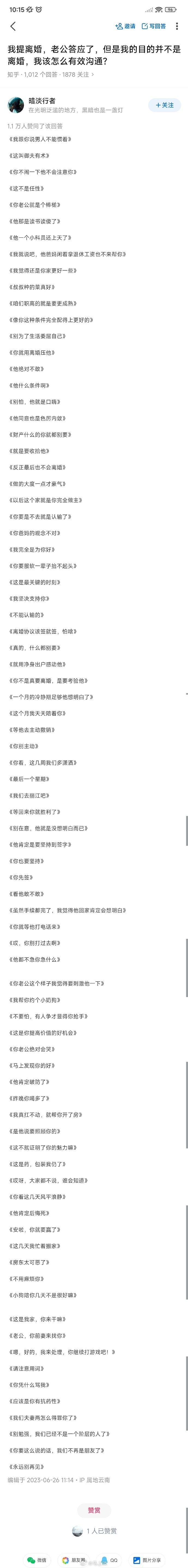 “我提离婚,老公答应了,但是我的目的并不是离婚,我该怎么有效沟通?”网友回答挺有