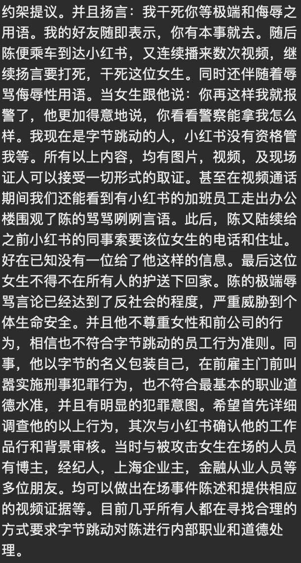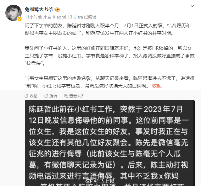 字节跳动和小红书的瓜,一天了都没啥关注度,证明大家都明白,那些只写小作文,却不报警的人和事,还要扯上整个公司,是不能单凭一面之词就站立场的哈