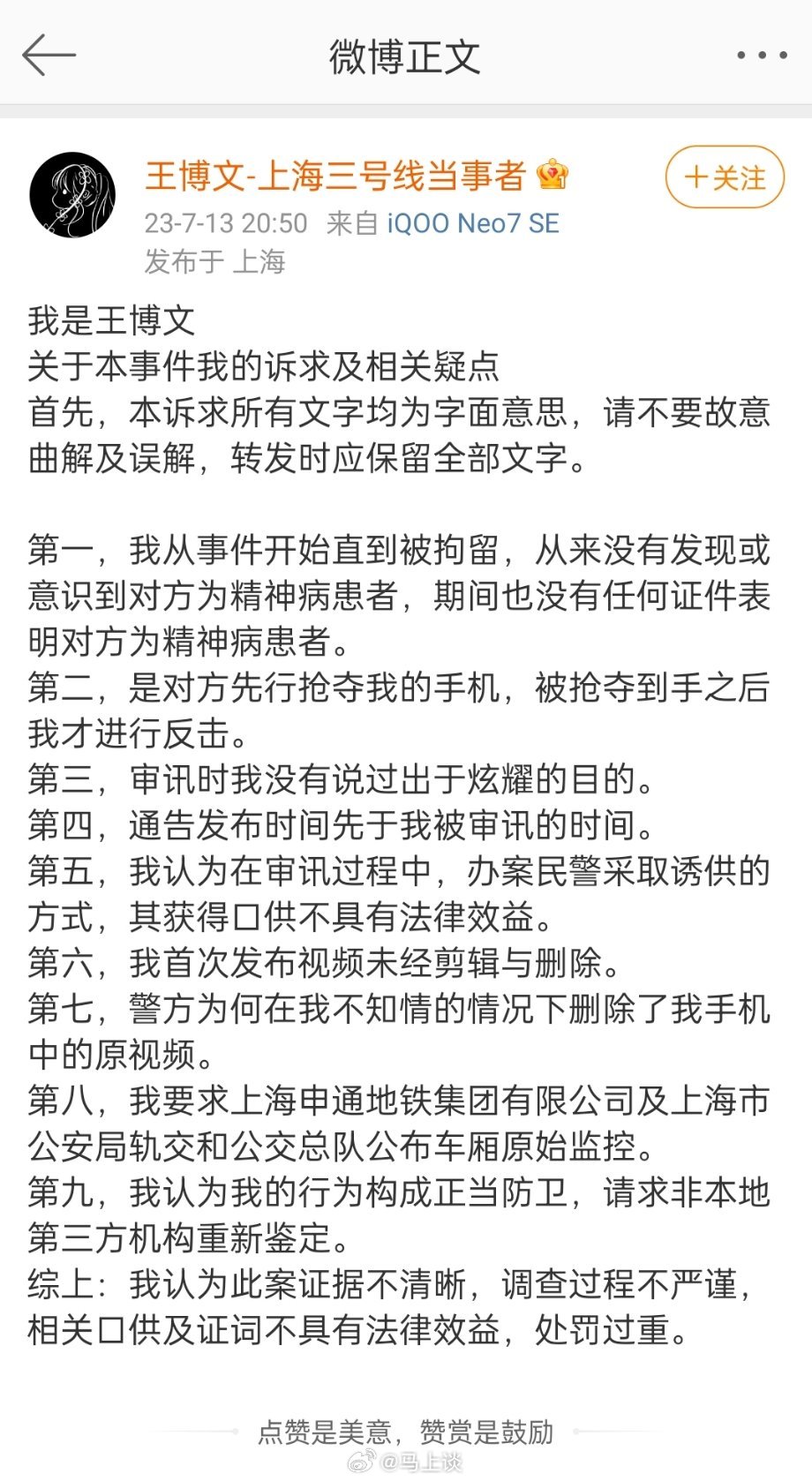 #制伏上海地铁辱华女当事人质疑警方通告# 上热搜了,当事人王博文称事实和警方通报不符,遭诱供已向纪检委举报。我觉得他也不可能说出感觉女子精神异常,出于吸粉和自我炫耀目的将视频剪辑后发上网,所以,等个后续[吃瓜]