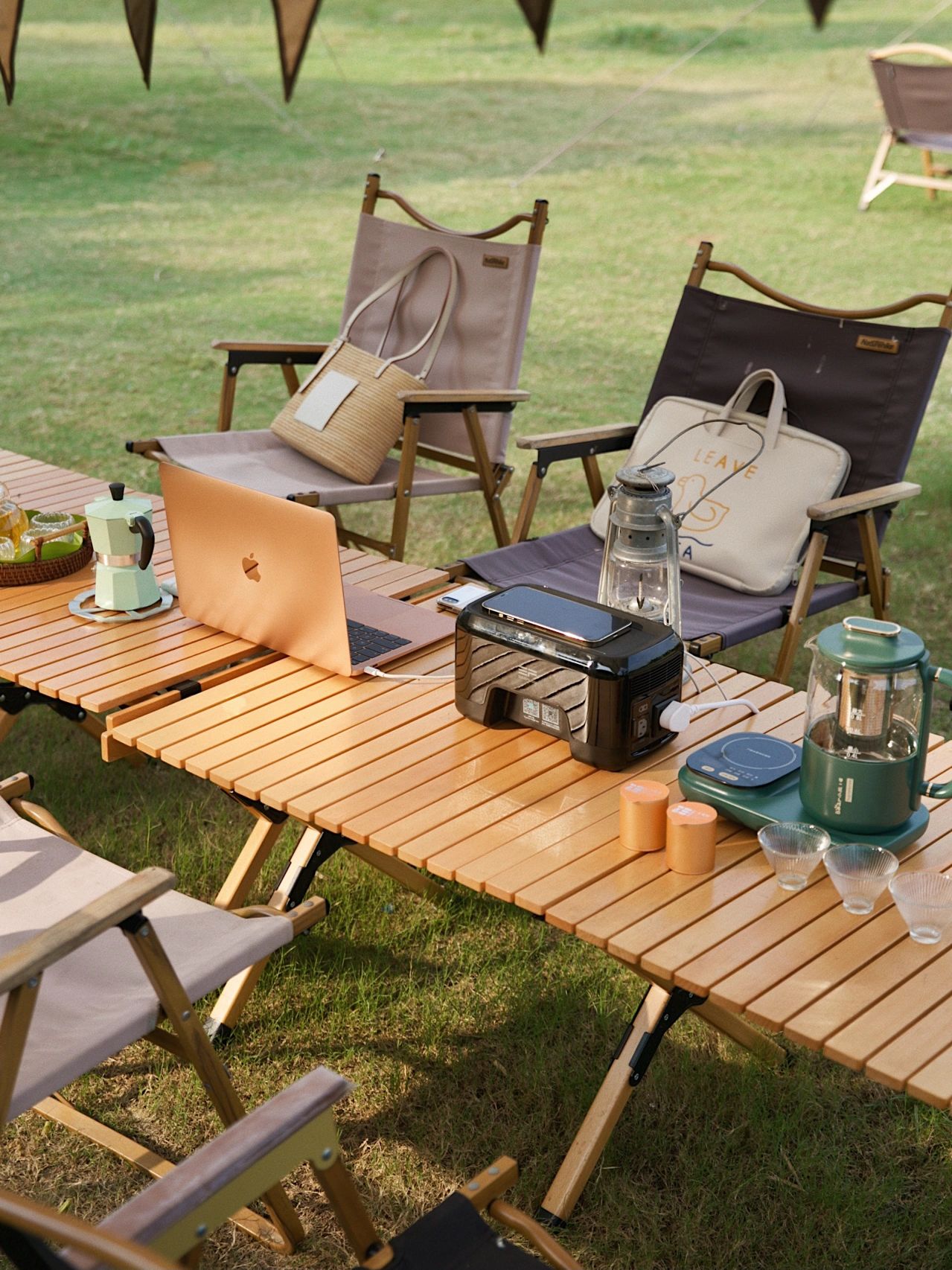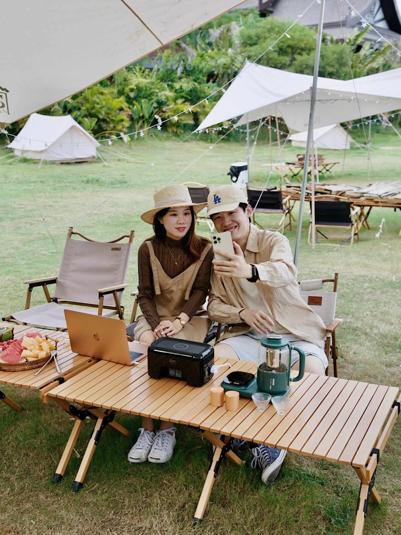 傍晚的阳光打在桌椅和背后的绿色草地上仿佛油画一般露营需要携带的工具还蛮多的,经常去露营野餐的我来帮忙大家列个清单,天幕帐篷如果要在外面过夜的话要准备帐篷哦只是野餐的话准备天幕就行了,桌椅准备可折叠的桌椅节省空间便于携带按露营人数携带就好了野餐篮野餐篮可以用来收纳装一些果蔬,杯子,餐盘之类的拍照也氛围感满满户外电源这可能会被很多人忽视但我觉得户外电源是户外过夜的必备品啦,可以用来连接电磁炉煮东西,给电脑、手机充电,煮茶,露营灯等等。