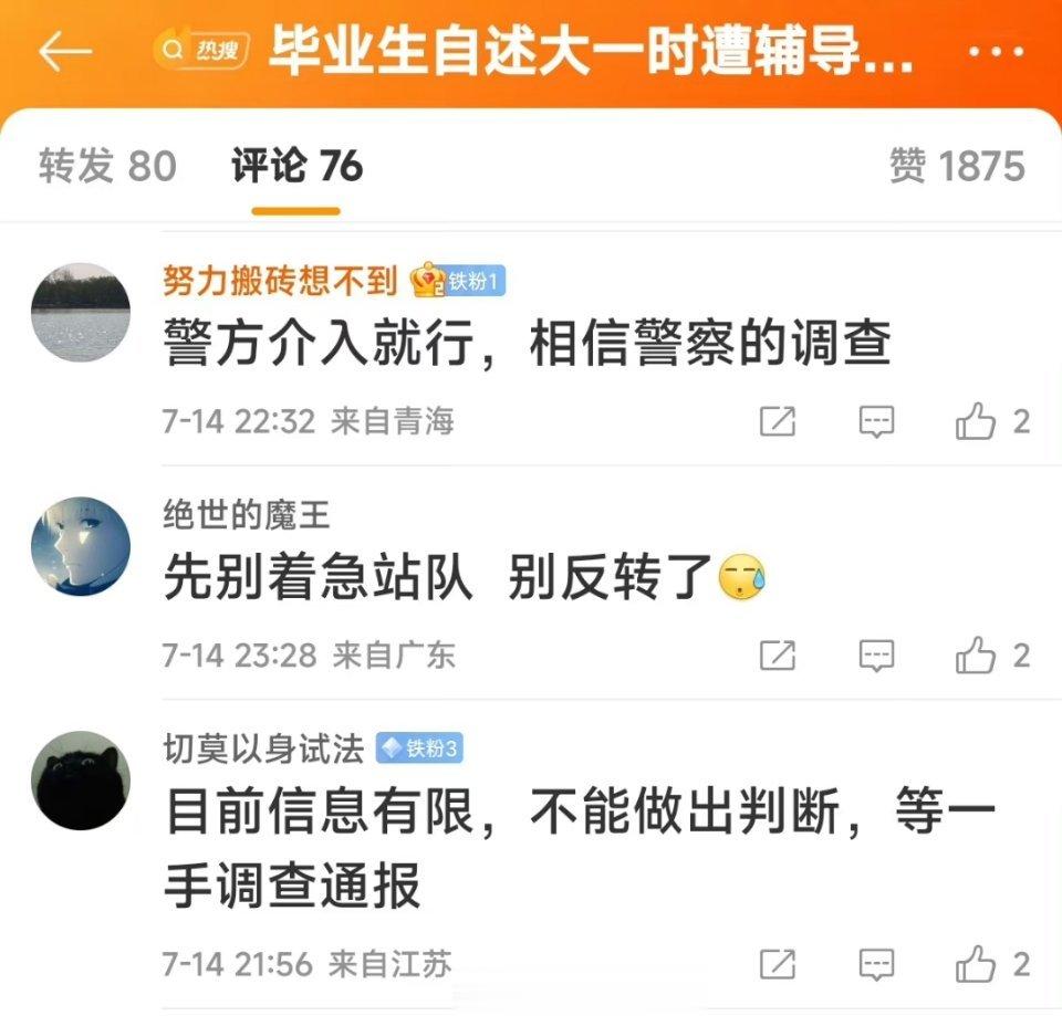 #毕业生自述大一时遭辅导员性侵# 如果真实,支持严惩!同时,女生说当时害怕,没有喊,也没有报警,更没有声张…有些不能理解。这么大的事,当时如果就报警的话,注意不是猥亵,是性侵!肯定有存有相关证据!他还能继续坐稳辅导员位置来报复你?时隔六年再曝光,我觉得有些不符合常理。看了下评论区…不得不说,以前写小作文的太多了,网友都小心翼翼了……[汗]