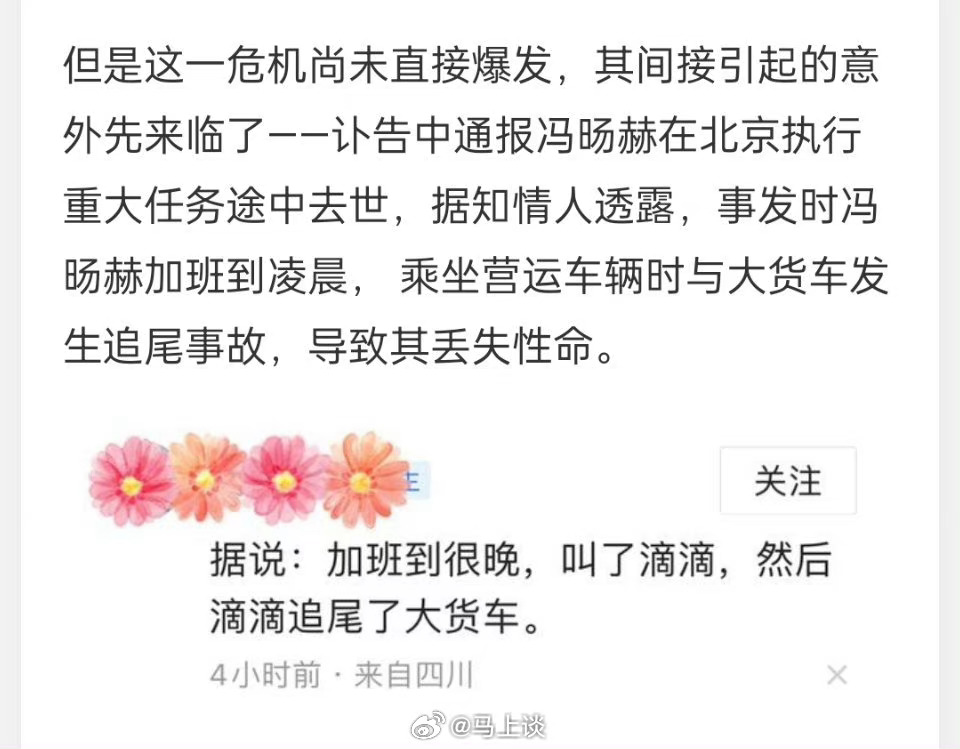 冯旸赫人工智能军棋推演领军人物,执行重大任务途中遭遇车祸…据说这是现场图,追尾大罐车,还被后车追尾…不是想阴谋论,只觉得太可惜了…