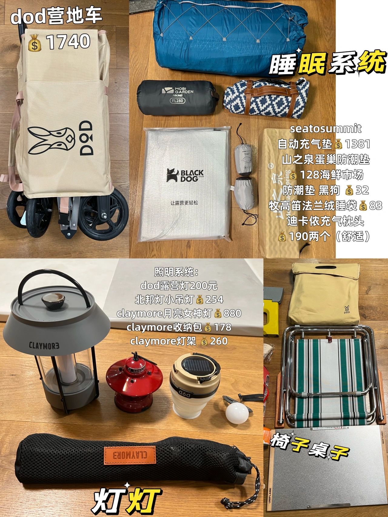 做了两个月精致露营攻略_一步到位高达200多个产品。佩服自己大家看着挑~ 1可亲子露营,2solo也可以。3搬家露营也成。4公园露营也成,想什么方式都OK!取决于你准备带什么东西,也不是说bc就多牛,公园就low了。dod就怎么被国人捧了,dod其实蛮可爱的兔子,受众群体比较大!真无好坏。还在添置阶段,再买几个轻量化东西_。买个好帐篷,睡眠系统等冬天再入。慢慢完善,自己喜欢且价格在自己接受范围内就好! 目前花了两万多。写不下了_大家看图片吧