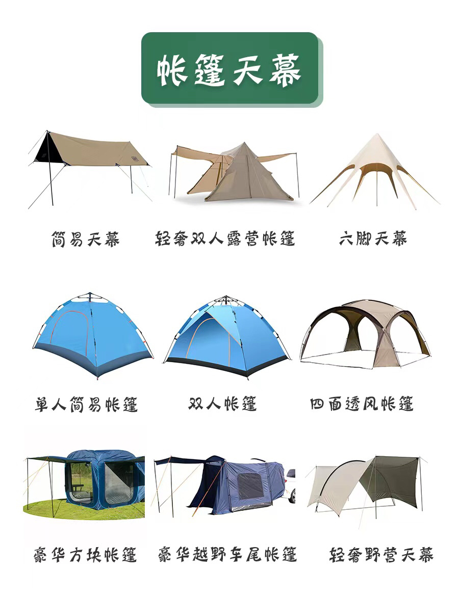 【帐篷天幕】帐篷和天幕算是露营必备产品,可以防晒防风避雨,主要是围绕结实、轻便、涂银(防晒)这几点去挑选