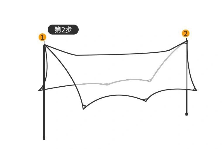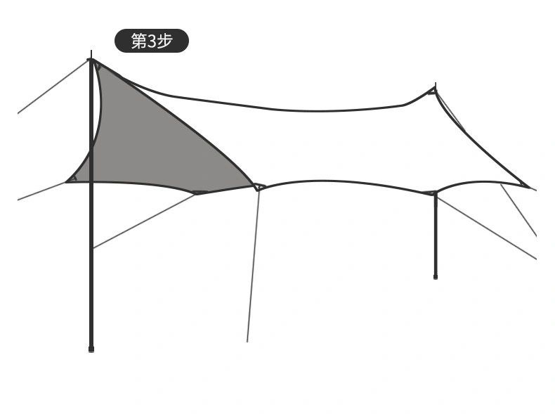 如何搭天幕?教你十分钟搞定天幕简单易搭建,新手不费力十分钟左右即完成 1。天幕布打开平铺在地面上,将8根风绳系在天幕织带上。 2。两端风绳拉直并钉下地钉,组装好两根天幕杆。 3。将天幕杆套进不锈钢扣环1_2处向上撑起。 4。撑起之后用风绳扣调节即可。