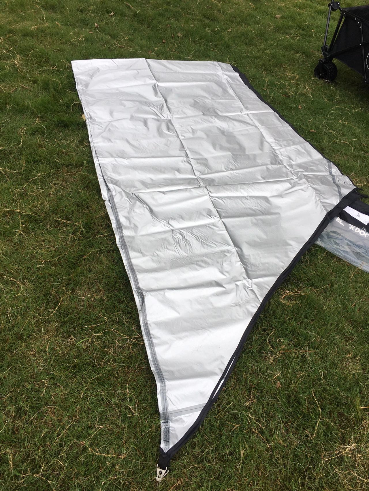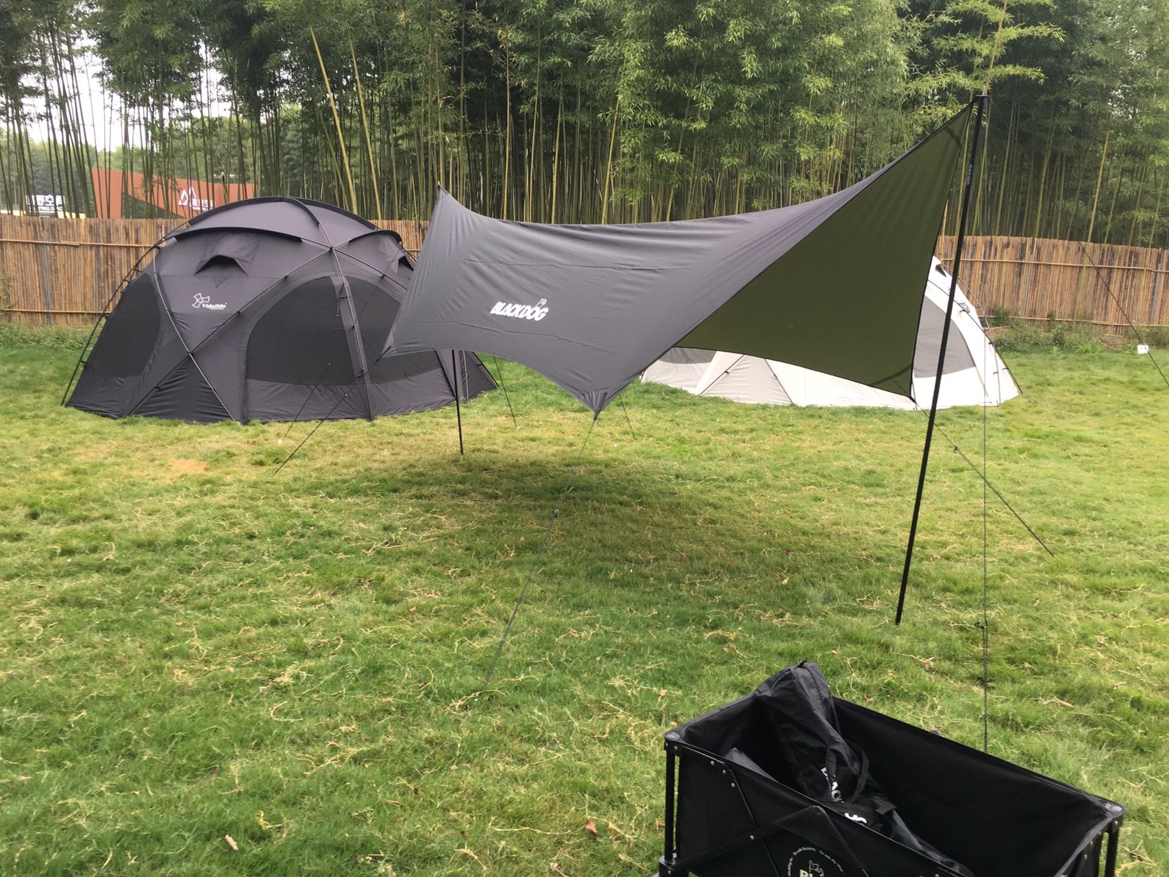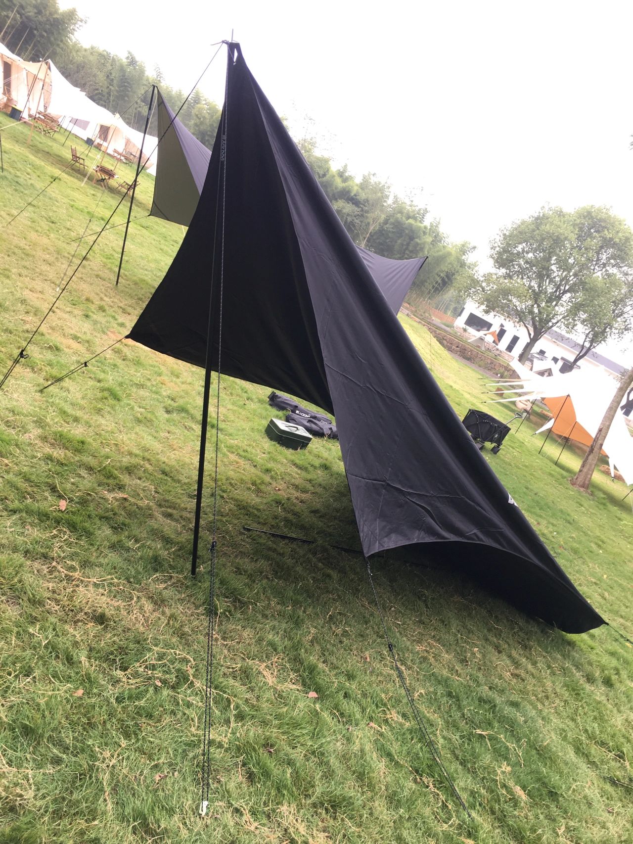 六张图看懂一人搭天幕先分类,杆子归杆子,风绳归风绳,天幕整体平摊在地。切记! 摊平摊工整,并且调整好两头的角度位置确保是自己希望的朝向 找个天幕的各个角。然后顺着这个角上系风绳的角度。距离50-60cm打地钉。每个角定地钉点都差不多。两头带支撑杆的定点可以略微比60cm长点。 钉完所有地钉连接风绳后。拿起一头支撑杆,直接穿上一头的孔,拉起来吧。调节风绳松紧就可以很容易立起来。另一头同理。 整体成型后,调整细节,该重新调整地钉位置的调整,该调解风绳松紧的调解。完美主义者就爱绷的边边笔直哈哈哈