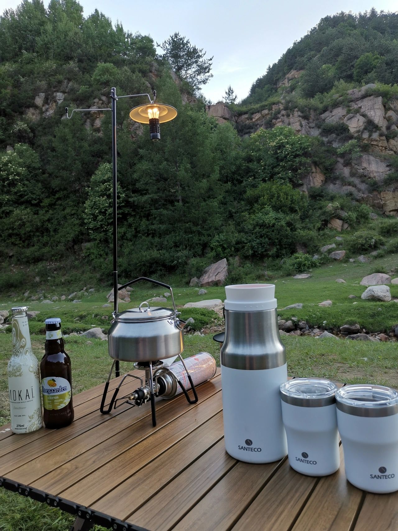 推荐近期入手了一套SANTECO冰桶套装(一壶二杯),主要是考虑到户外露营场景不可能永远一直在烧水,所以有个保温壶用来存放热水还是很有必要的,再一个就是夏天保温壶还可以当做冰桶用,试想一下炎热的夏天,来一杯加冰的饮料或者啤酒,那叫一个凉爽哈哈,这套保温壶整体用下来还是非常满意的,所以推荐给大家,分享如下:1:高颜值,不愧是来自法国的原创设计,奶白色与不锈钢的撞色瓶身,配合上符合人体工程学的曲线、亚克力材质的杯盖,颜值简直就是保温壶的天花板。2:材质安全,保温壶与杯子均为食品级304不锈钢材质,使用更安全,360度开启的壶盖是特色,设计非常方便优秀。3:容量大,保温壶1。2L,满足1-3人所需完全没有问题,我觉得这个容量刚刚好。4:保温持久,亲测冰块可以保持12个小时不化,保温更是一晚上没有问题,赞一个。5:使用场景丰富,这么好看的冰桶套装,真的做到了万景皆可配,无论是户外露营、办公室下午茶、还是居家使用,都非常合适,靓丽的一道风景线。总之非常好用,推荐给小伙伴们