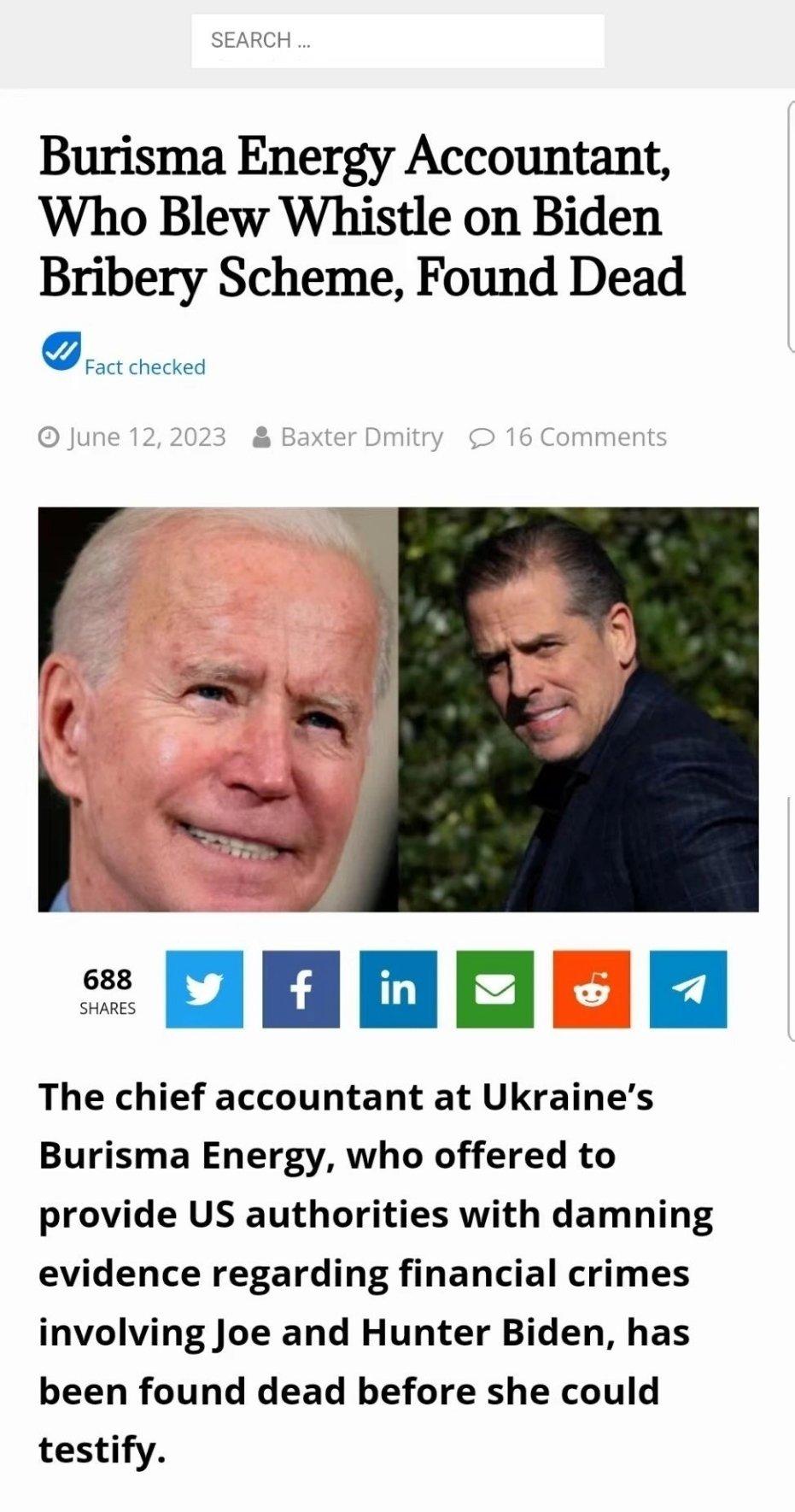 #拜登政府宣布取消390亿美元学生贷款债务# 公家钱和私人钱拜登还是分的清楚的。揭发拜登受贿案的乌克兰Burisma能源公司首席会计师布里斯马被发现死亡,他曾向美国当局提供有关乔·拜登和亨特·拜登(拜登小儿子)金融犯罪的确凿证据,但却在作证前被发现死亡。真能说,别看拜登昏昏沉沉,他的家族赚钱时可真不糊涂![微笑]