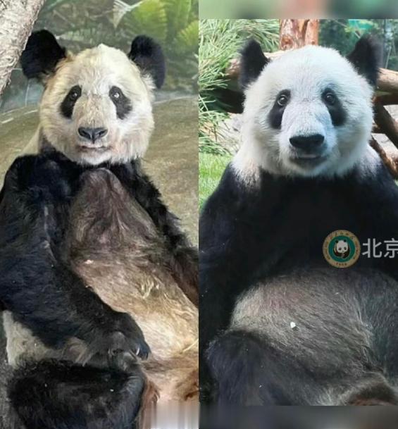 #丫丫吃的笋笋套着竹篓# 难以想象,居然把这样一只熊猫给养好了…当初把丫丫接回中国时,看她的状态,我真的以为她活不长了……