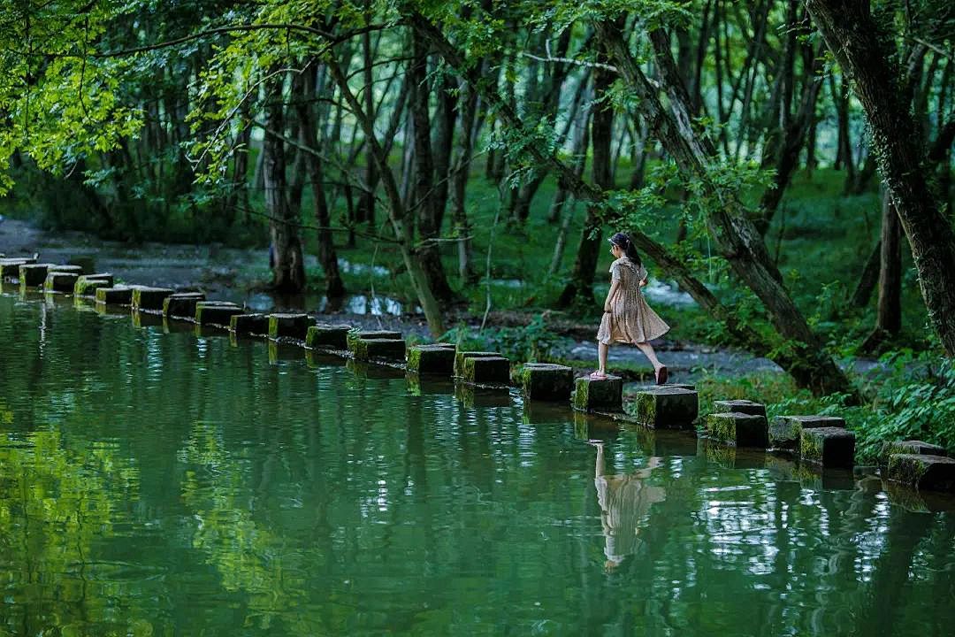 【枫杨林】🌳村口的枫杨林就是绿野仙踪本踪了。树木高大,溪水从中穿过。木板桥和水上石墩怎么拍怎么出片。林子不大,可以顺着走到上游的小瀑布呢。