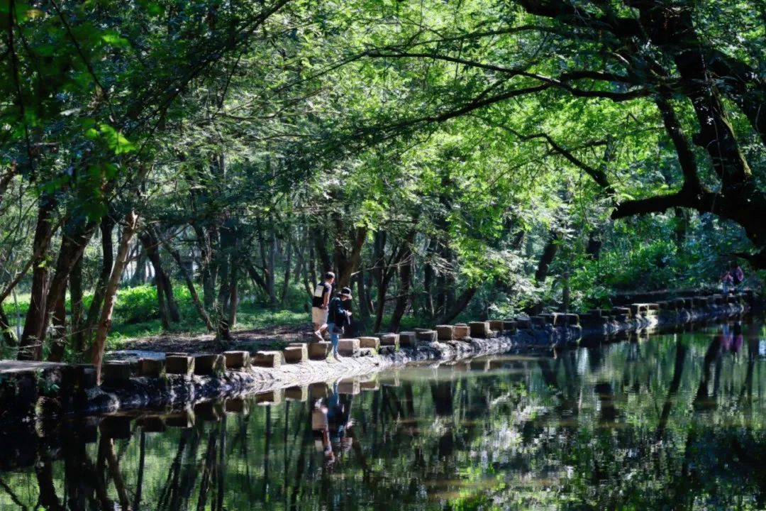 【独桥进村】🌉进村去通过长长的石板桥,因此车辆依然无法入村。选择步行可以更好的享受美景,站在桥上就能看到两岸延伸的绿枝,树木成荫。