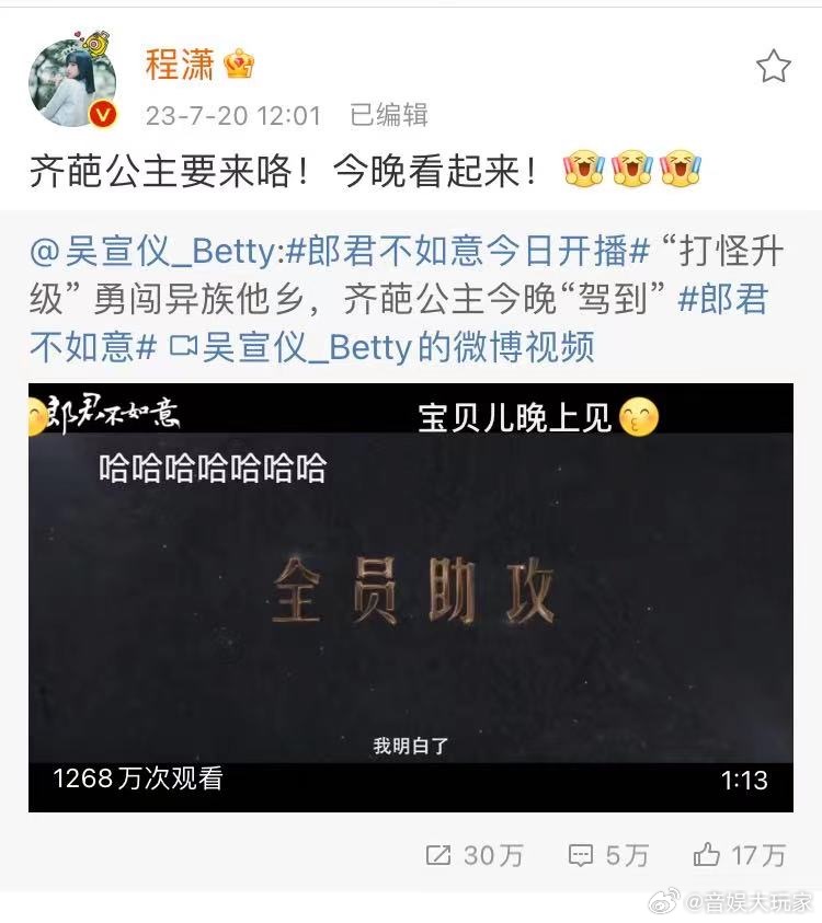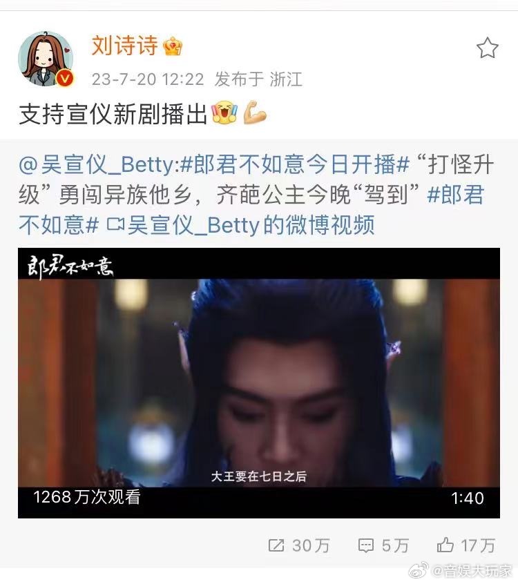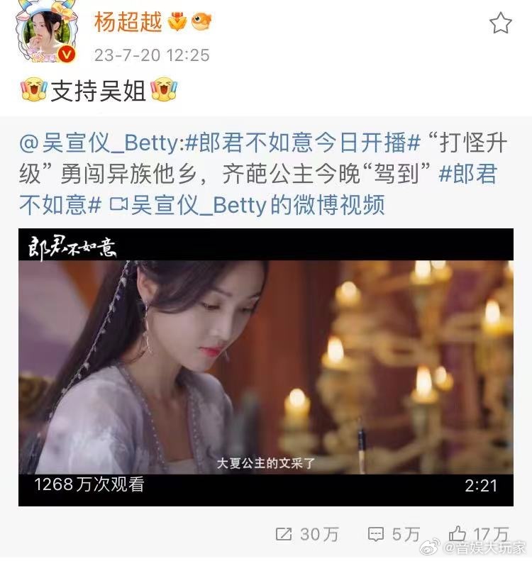 #新浪娱乐[超话]##众星帮吴宣仪新剧打call##众星打call吴宣仪新剧# 刘诗诗虞书欣杨超越秦岚都来打call了哎,看来热度非常不错呀