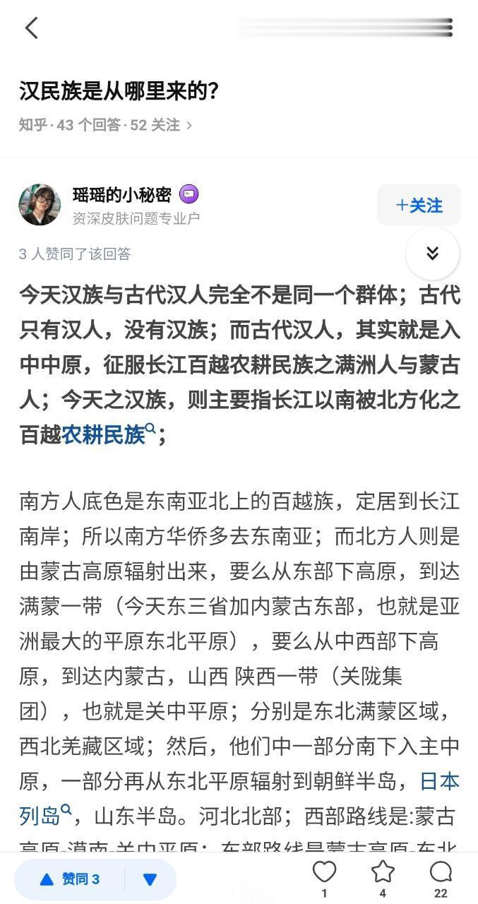 什么资深皮肤专家 就是个种族主义狂暴份子 就是放美国也能挑事的那种 谁都知道没有严格意义上的汉族区分 是以汉朝为名 加几千年的民族大融合才有了现在的汉族