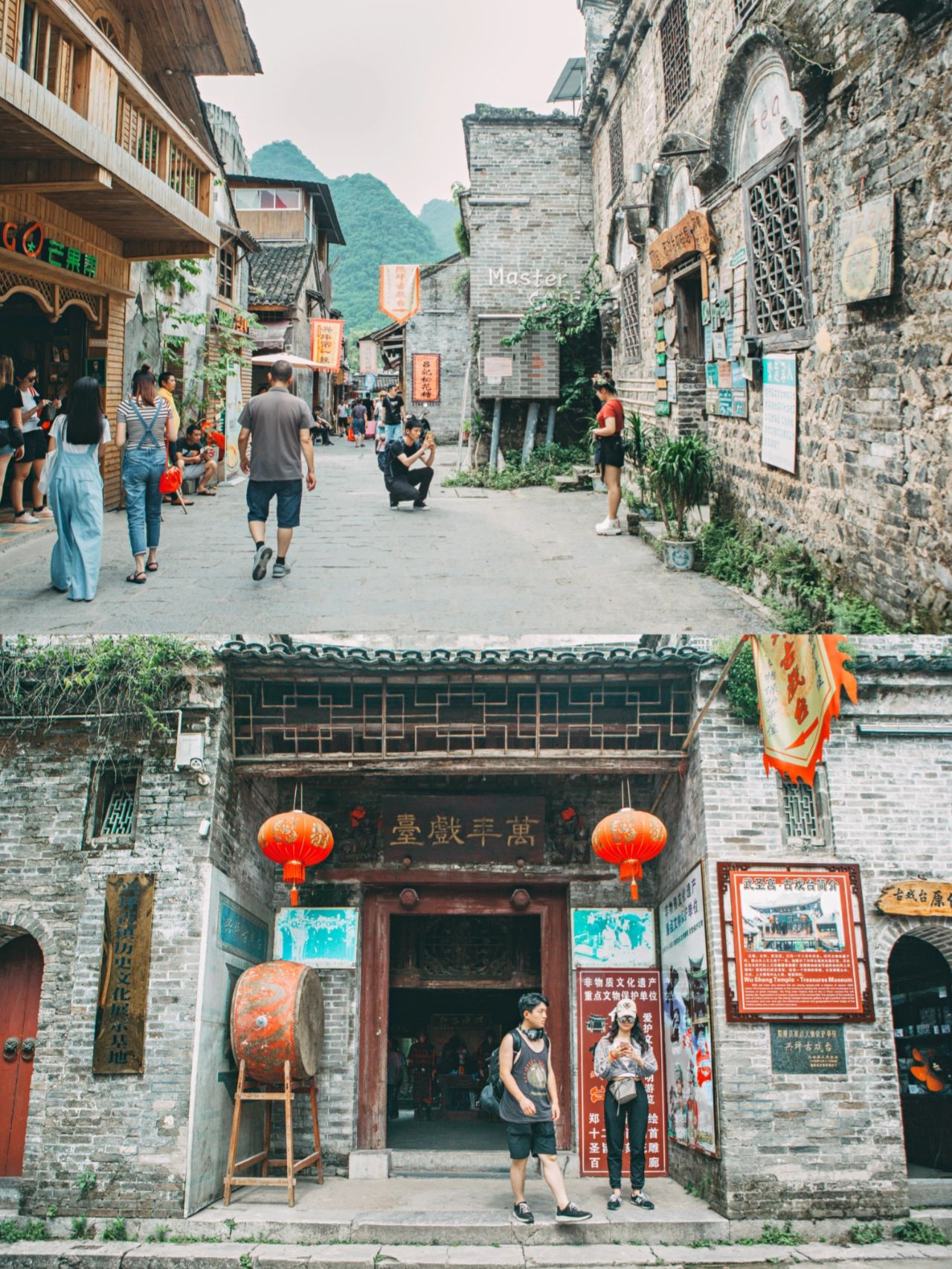 中午我们就去兴坪古镇吃午饭啦,这里没有西街那么商业化,也很适合买伴手礼🛍️。吃完饭去20元人民币打卡,体验漓江竹筏。