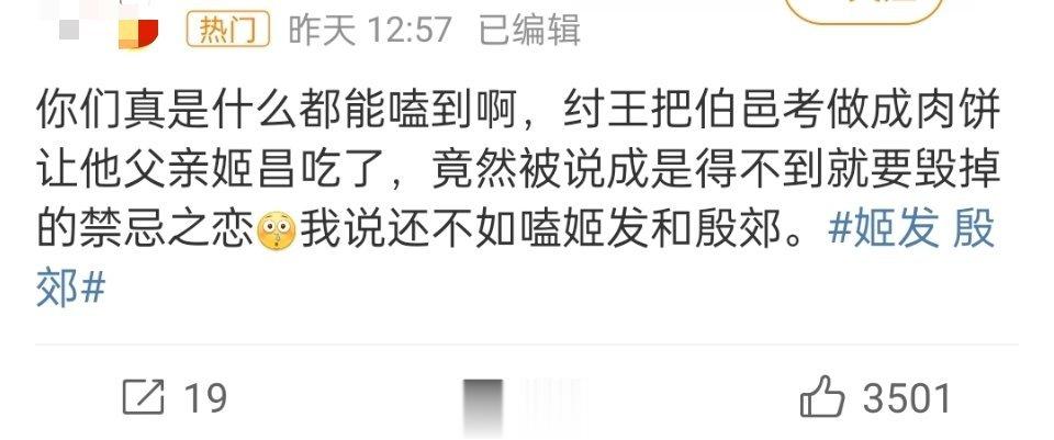 #姬发 殷郊# 昨天炒作性别 #封神终于不再甩锅女性# ,今天炒作男男CP,连儿子伯邑考和父亲姬昌都嗑成禁忌之恋…如今的炒作都这没下限吗?[微笑]