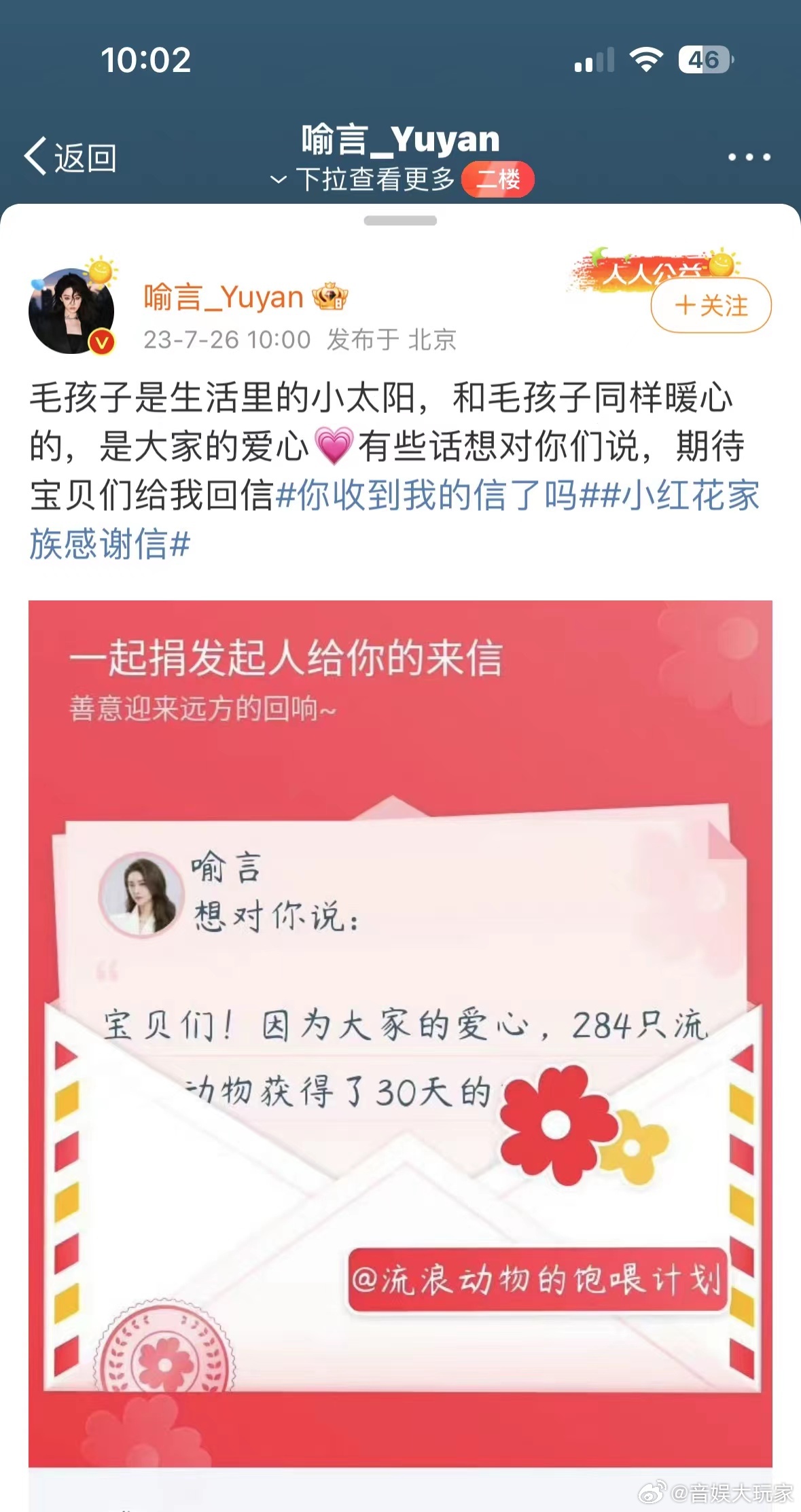 #喻言说毛孩子是生活里的小太阳#感谢大家为流浪的小动物捐来的爱心,而且其实在我们身边也会有很多流浪的小动物,我有时候也会给他们一些粮食吃。#喻言感谢帮助小动物的网友#