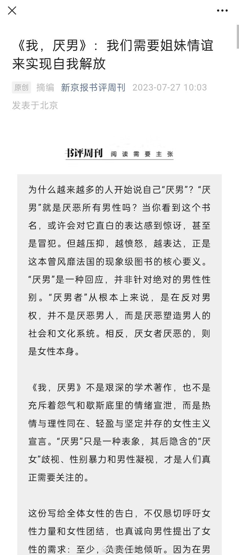 新京报推书:《我,厌男》!我以为新京报改了,没想到它是换赛道了…[doge]