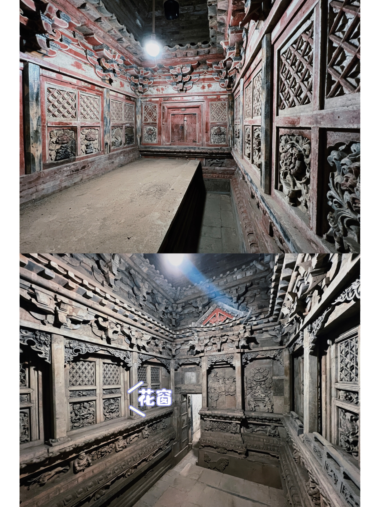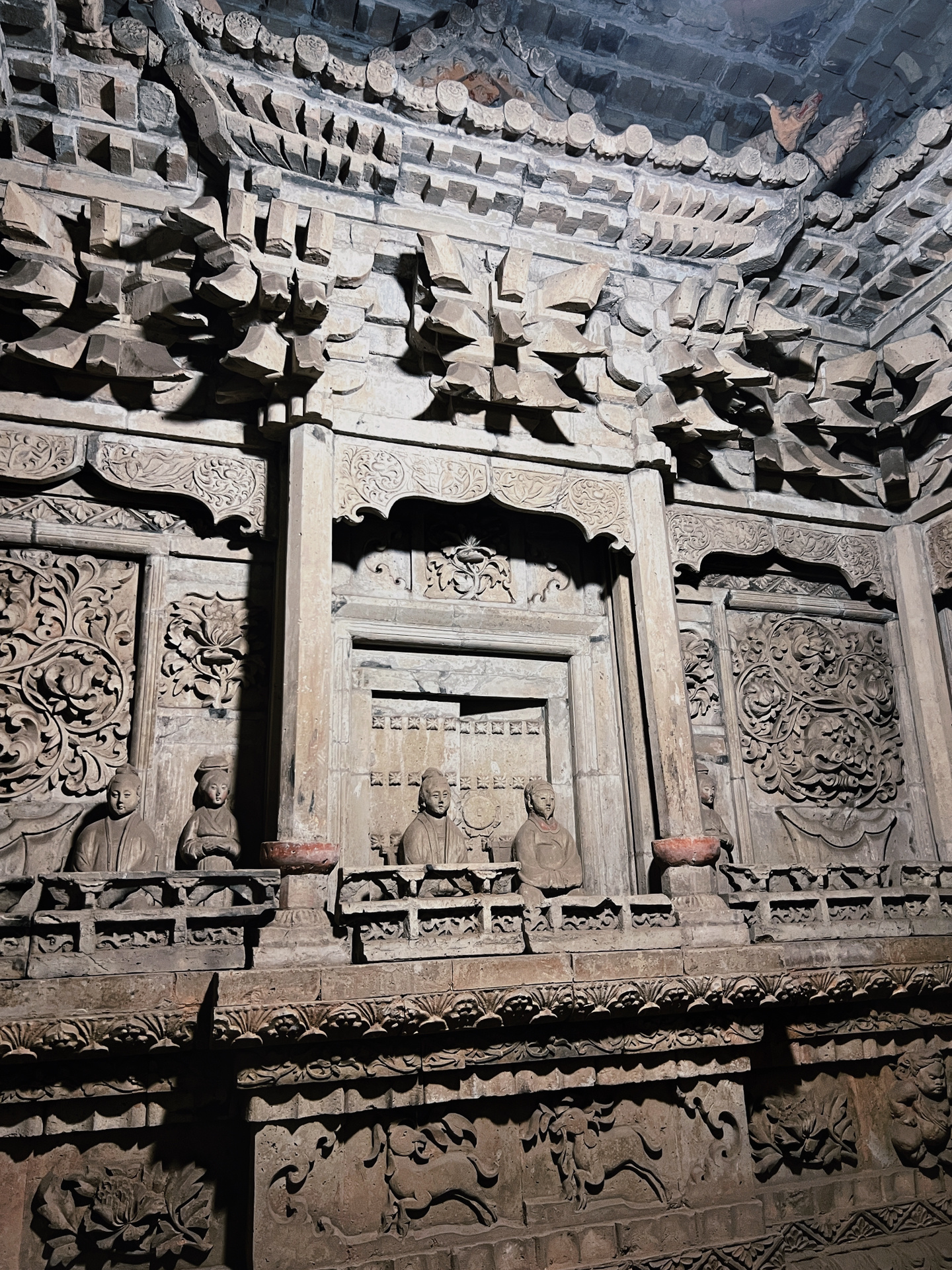 墓室建造的十分精美,每个上面都是仿木结构但是是石头雕刻的门楼斗拱,且保存的十分完整