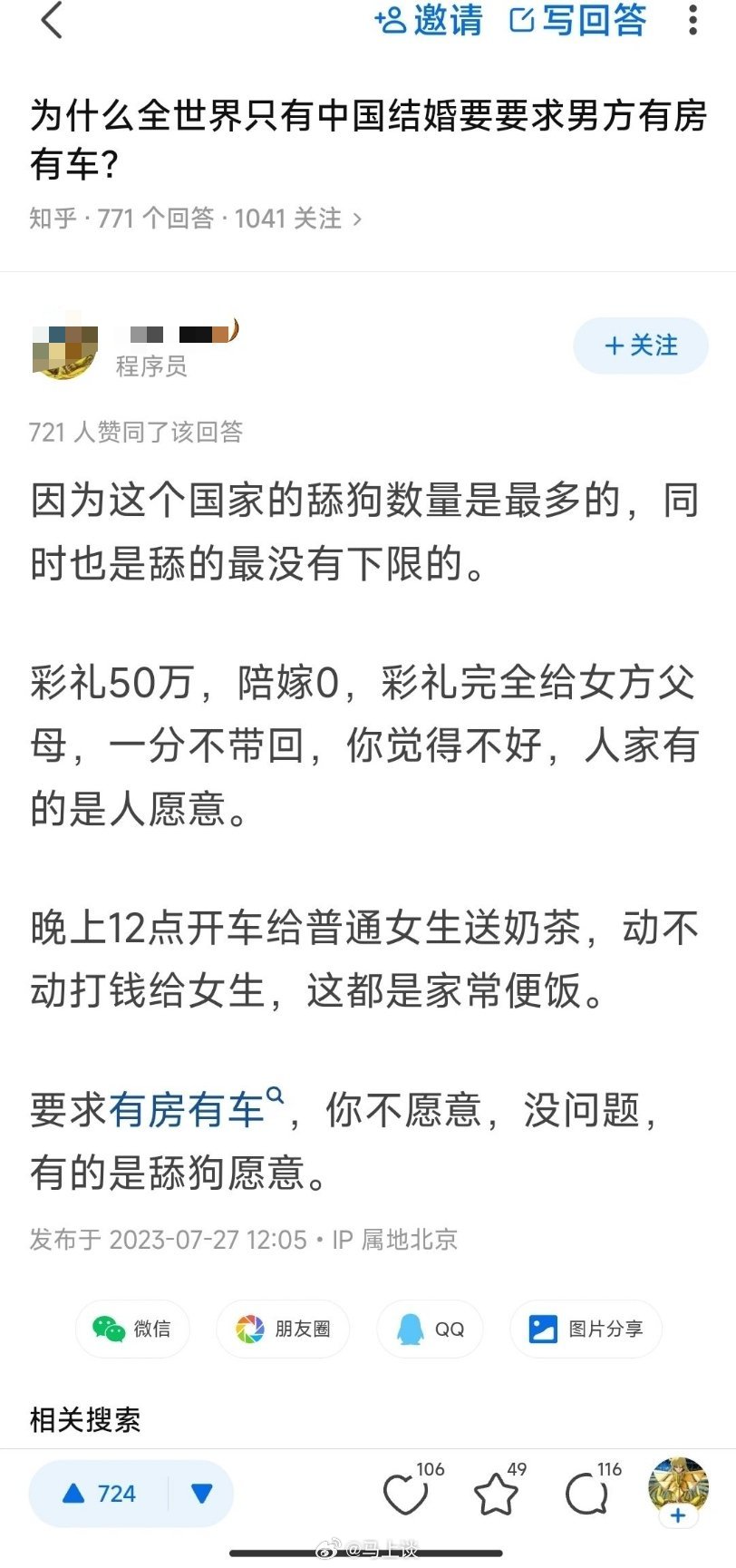 本来就是!越捧越高 ,彩礼车子房子、离婚率、出轨率越高!