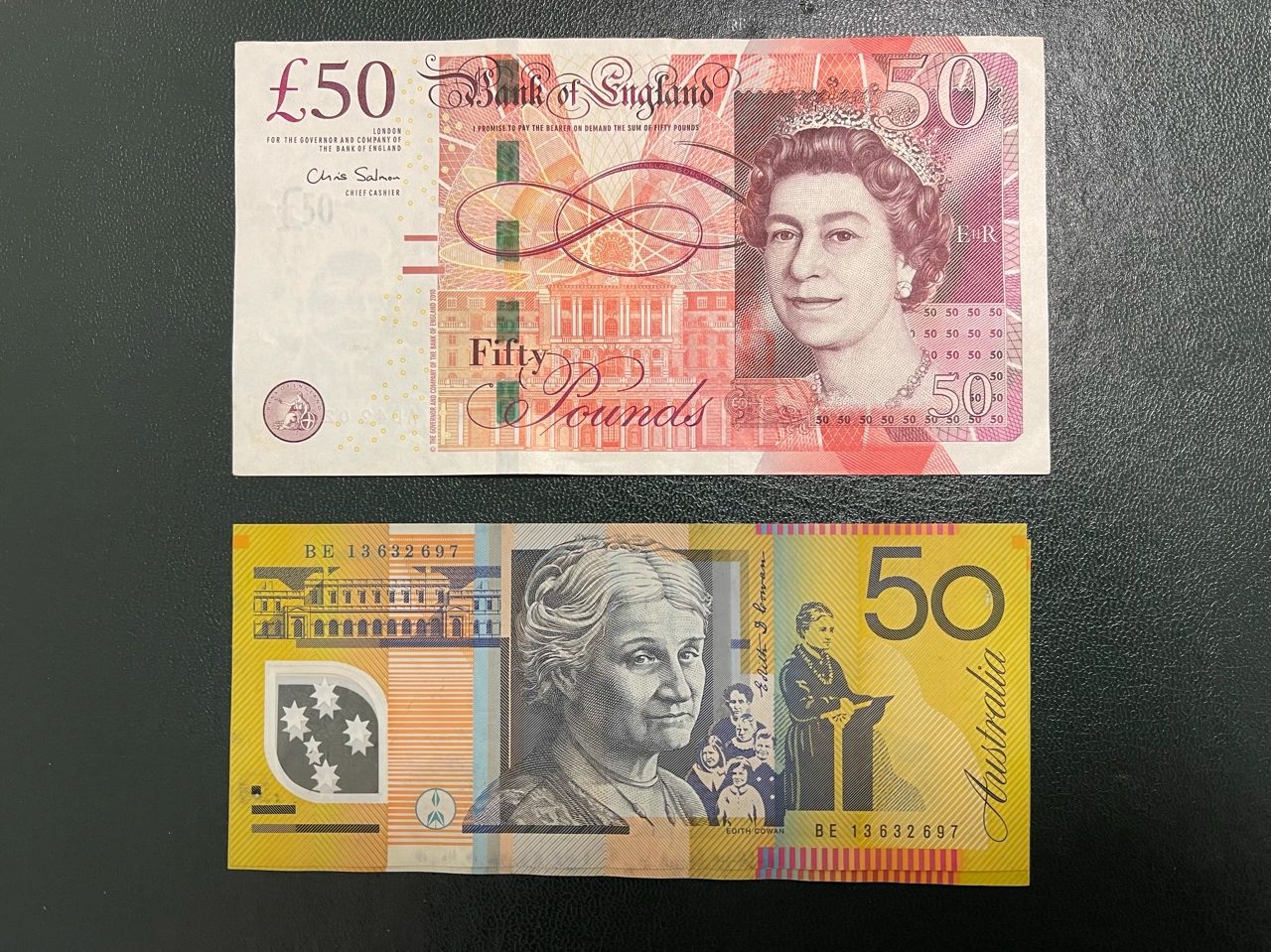 50镑的英镑看着真的尺寸很大, 于是拿出手里的一些纸币对比了一下。 常见主流货币大面值尺寸: 100人民币 155*77 100美元 156*66 100欧元 147*82 50欧元 140*77 100澳元 158*65 50澳元 151*65 50英镑 156*85 10000日元 160*76