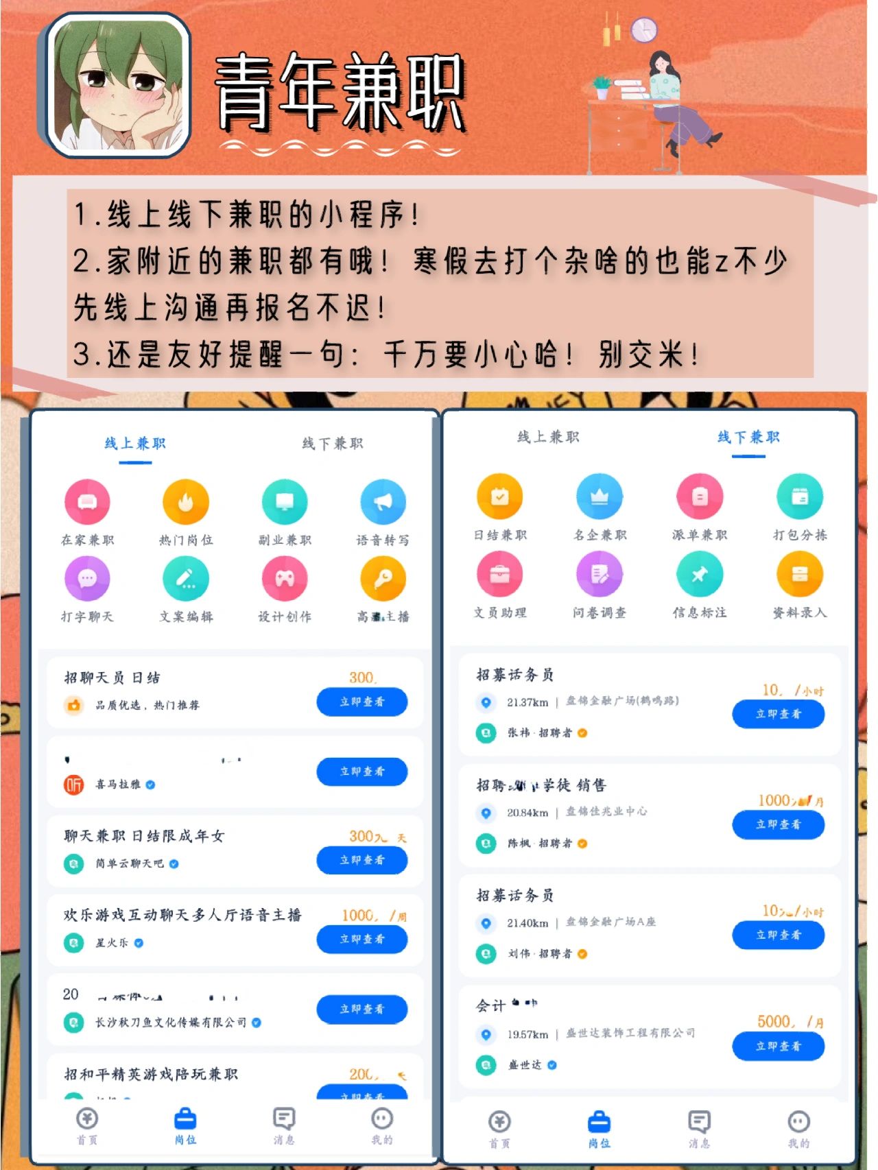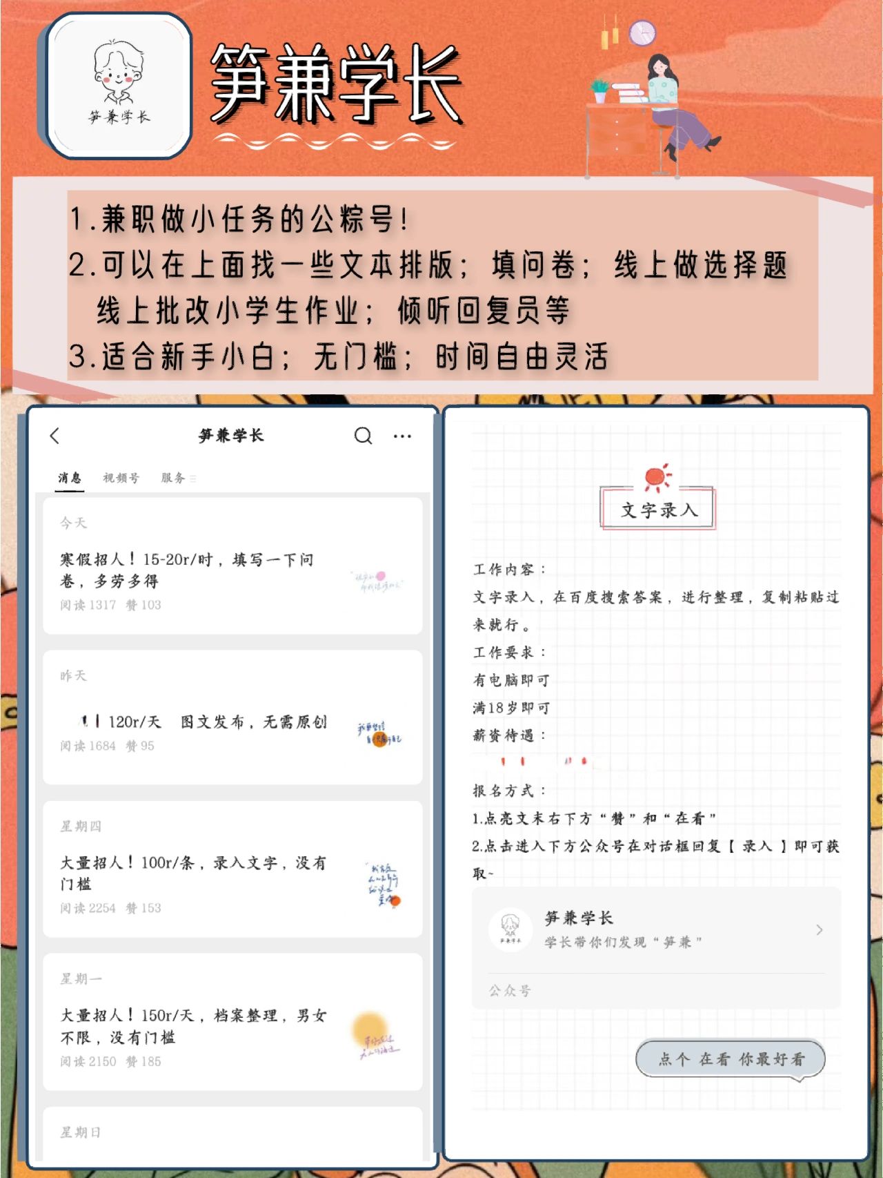 笋兼学长 兼职做小任务的公粽号! . 💰米多赚Q 小任务赚米的APP! . 青年兼职 线上线下兼职的小程序! . 全民写小说 手机写作写小说赚米的APP! . 脸疼 围观他人的flag赚米的APP! . mori手账 做手账赚米的APP! . 青团社兼职 线上线下兼职的APP! . 知柚招聘 线上做任务赚米公粽号! . 这些虽不能让你大富大贵,但是要实现奶茶,炸鸡自由还是很轻松容易滴!自己赚钱自己花,不香吗?
