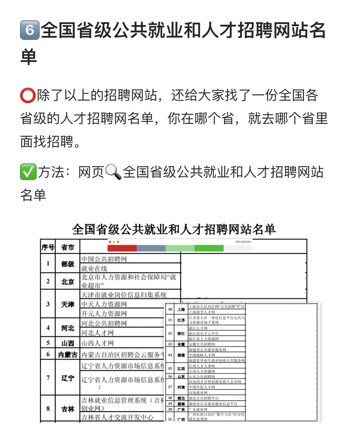除了以上的招聘网站,还给大家找了一份全国各省级的人才招聘网名单,你在哪个省,就去哪个省里面找招聘。