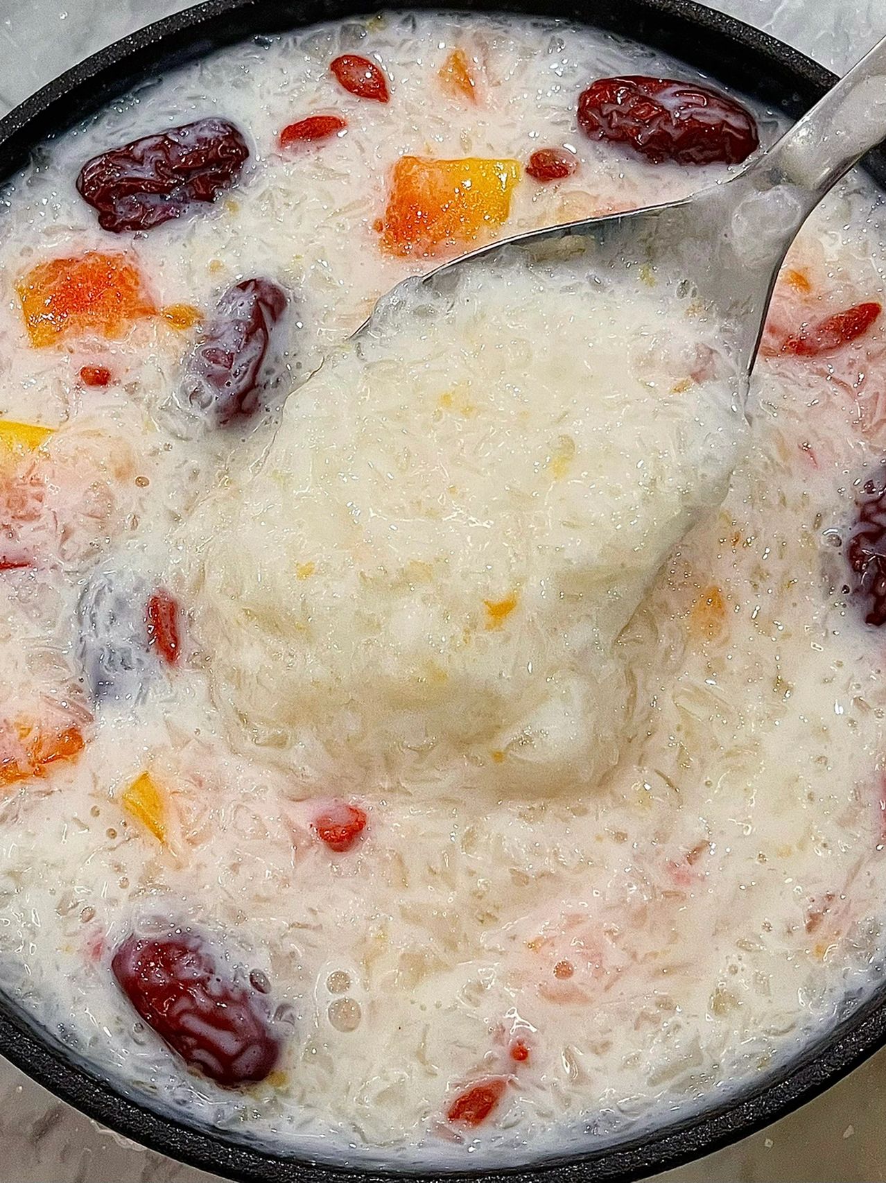 【食材】 银耳6g、木瓜1/4个、红枣10颗、枸杞20g、牛奶100ml、水600ml 【做法】 1银耳、红枣倒入锅中,倒入600ml水,水开后转小火熬10分钟 2关火,倒入枸杞、木瓜、焖3分钟 3️倒入牛奶,搅拌搅拌,开吃啦 超简单又好喝!又养颜! 每天一杯,一起白嫩嫩水嫩嫩!浓郁奶香,清甜细腻,养颜还有营养~