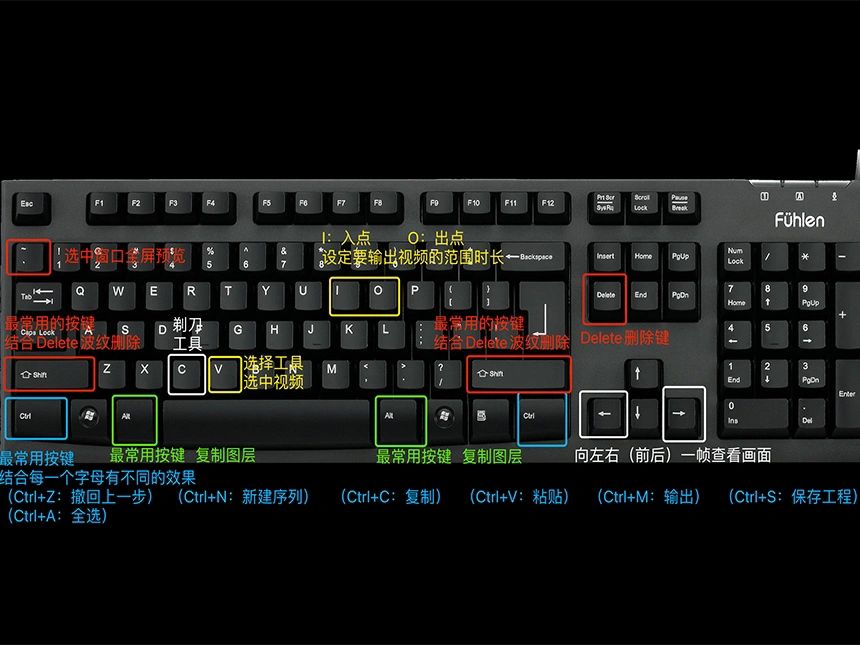 快捷键I=视频开始的点(默认第一个视频开始)