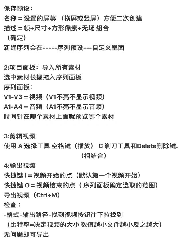 快捷键O=视频结束的点(序列面板确定选取的范围)导出视频(Ctrl+M)检查: