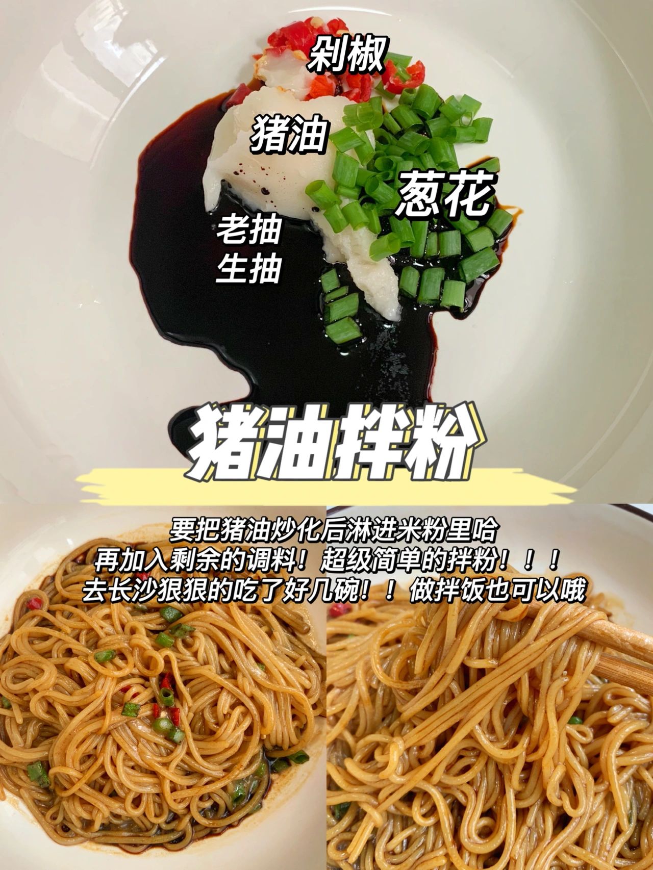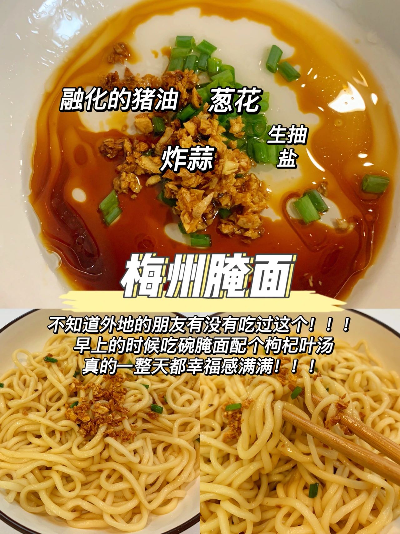 融化的猪油,葱花,炸蒜末,生抽