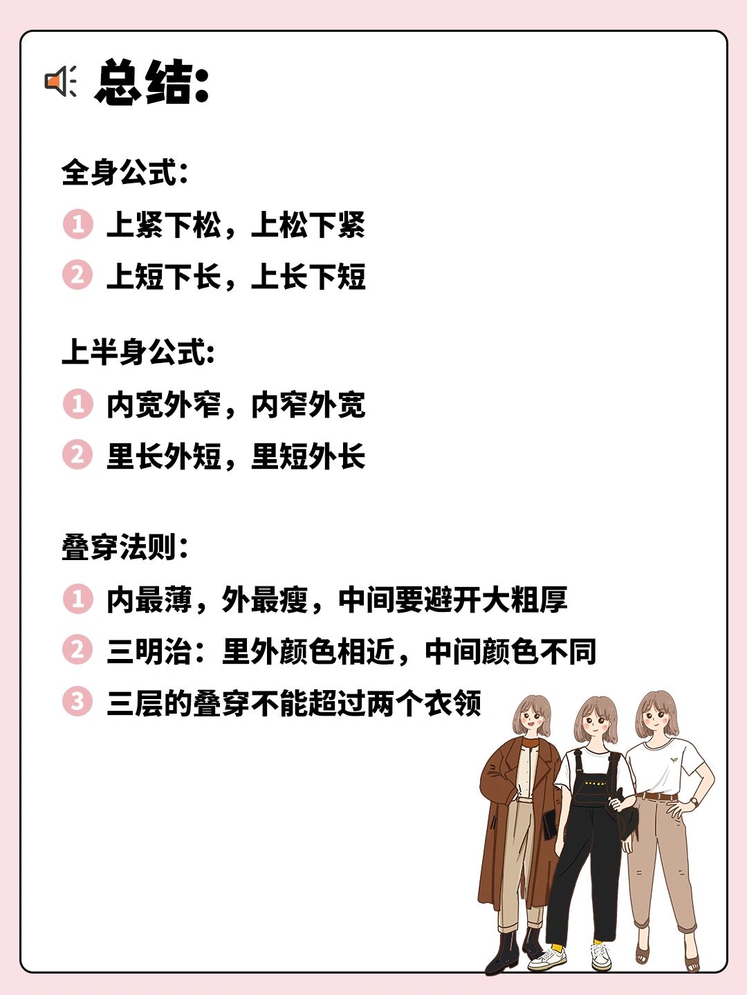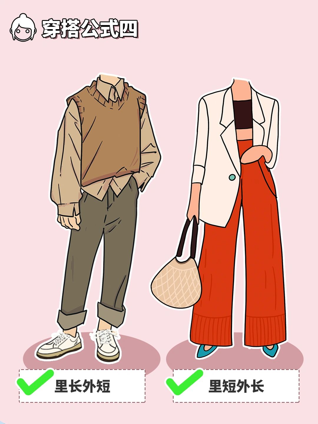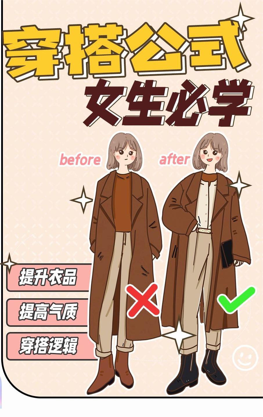 今天这一期给大家分享穿搭的底层逻辑公式,如果姐妹们觉得平时搭配不协调,或者不知道从何入手的时候,就可以参考以上公式来进行调整喲!