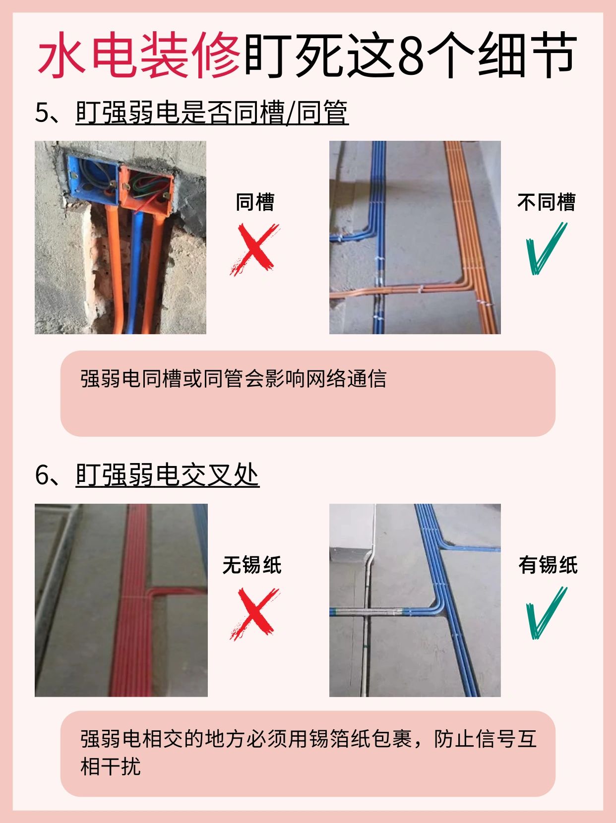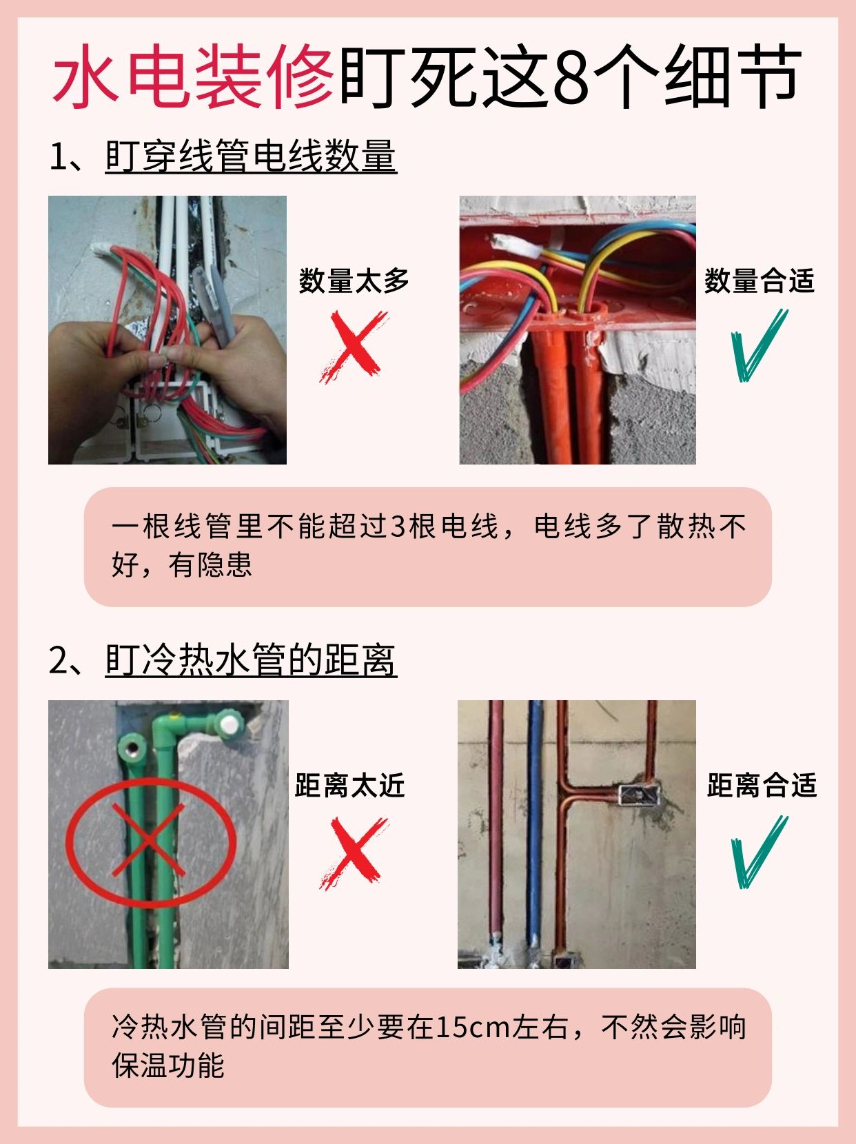 别再无效监工了!盯紧这8点没人能忽悠你! 有多少人的装修是栽在了水电上? ! 水电是最容易出问题也是对以后入住影响最深的一个装修环节!好多人最后悔的地方就是水电没搞好! 所以今天整理了一篇水电装修时要紧盯的地方,帮助大家在装修水电阶段做到完美不后悔!