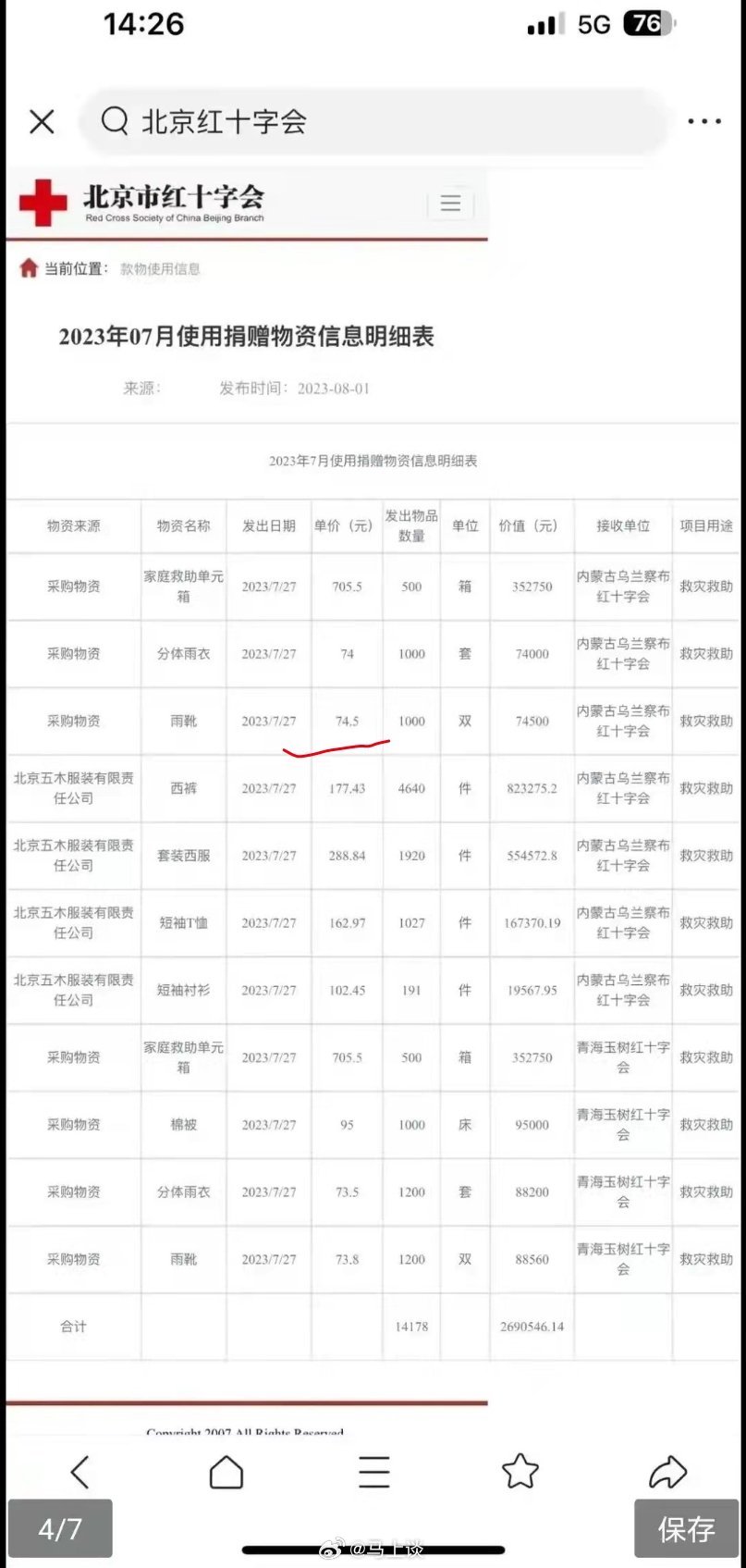 网友吐槽红字会采购救灾物资73元一双雨鞋太贵,的确有点贵,难道是因为质量上佳?