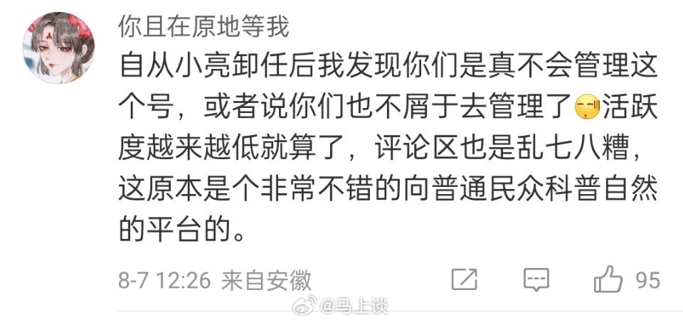 看看中国科学院下属、中国国家地理杂志社官微是怎么打拳收割流量的,对,就是无穷小亮狐主任原本供职的单位。它的文案不用雄雌用男的,刻意挑起对立,作为国家单位的官微真是没有职业道德!关键博物杂志定位还是面向青少年…难怪网友说,狐主任一走,这个微博好像再也管理不好…