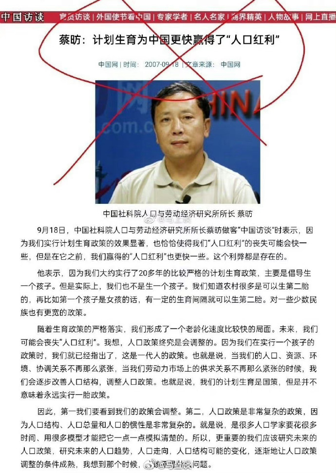 蔡昉:计生为中国更快赢得了“人口红利”!