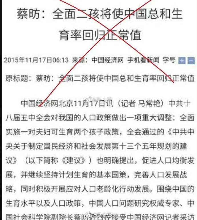 蔡昉:全面二孩将使中国总和生育率回归正常值!