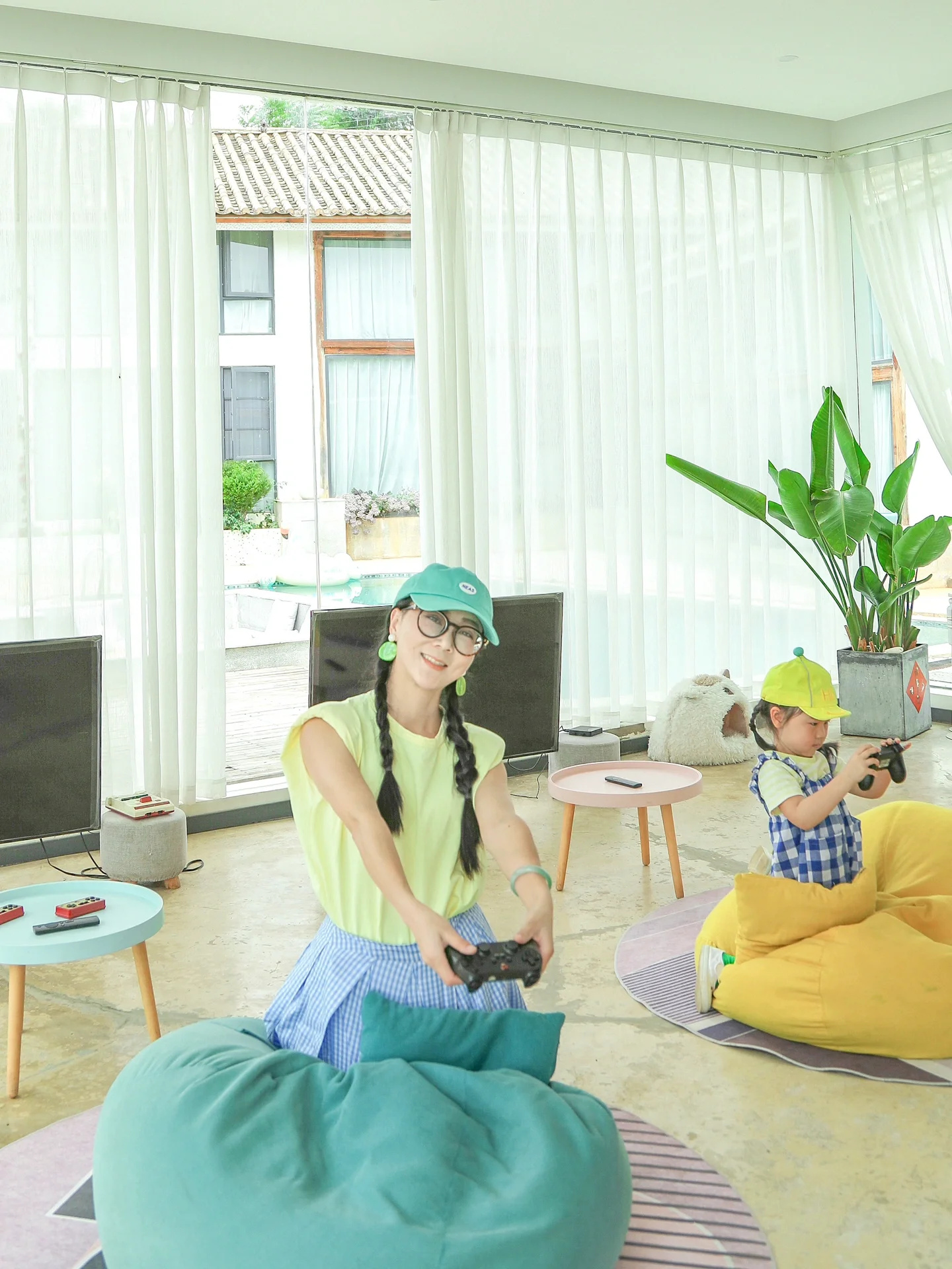 ⛲️设施:泳池、健身房、桌游、电玩、观景长廊、露天花园,泳池边还可以烧烤,小朋友和爸爸妈妈来到一定不会觉得无聊。