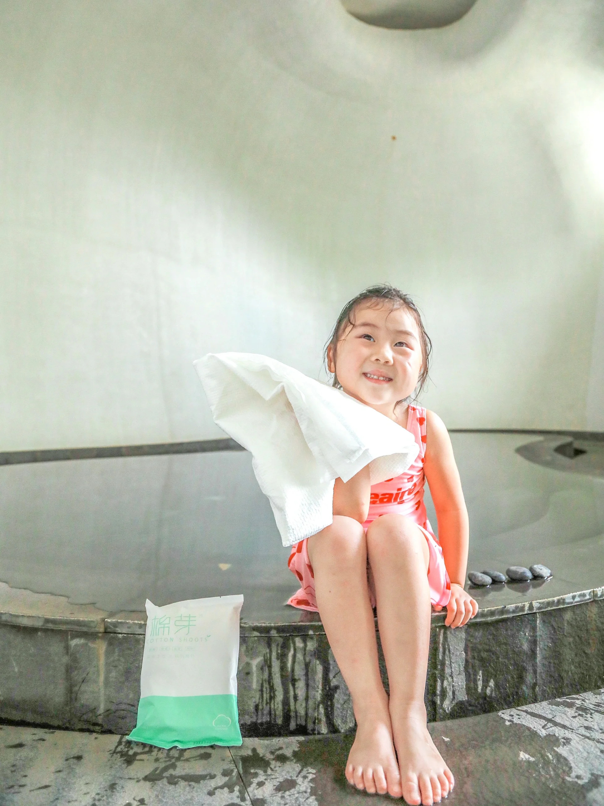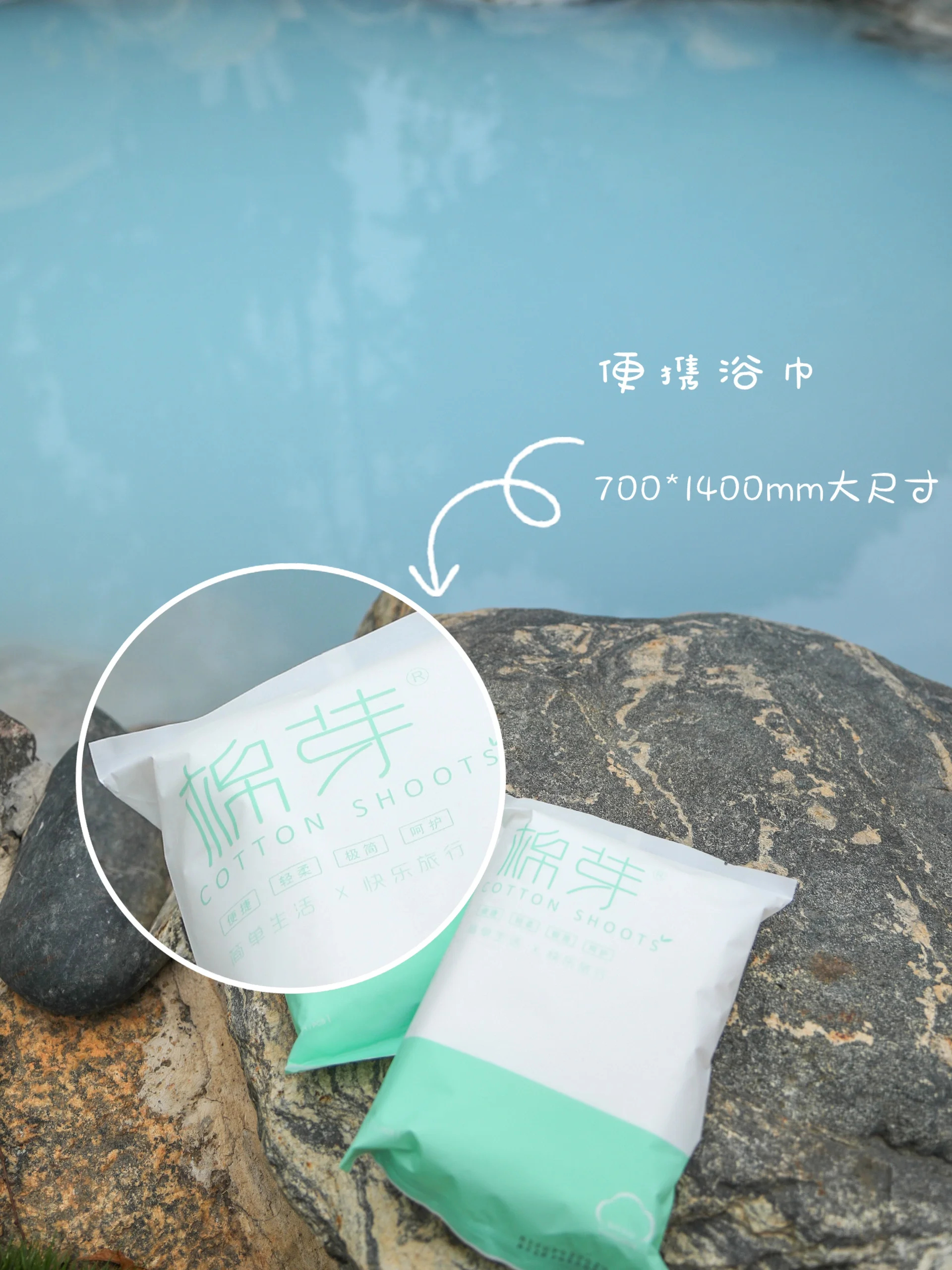 外出泡温泉都会给我带上棉芽一次性的浴巾,单独的包装放进行李箱好携带,展开来每块都很大,可以把我完全包裹住。