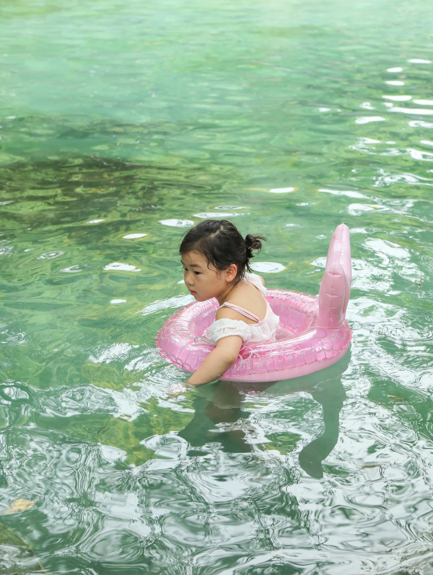 我和妈妈穿上了美美的泳衣,粉白色在这绿树掩映的池中很是出片,泳衣的材质亲肤柔软,我快活得象一条小鱼游来游去。