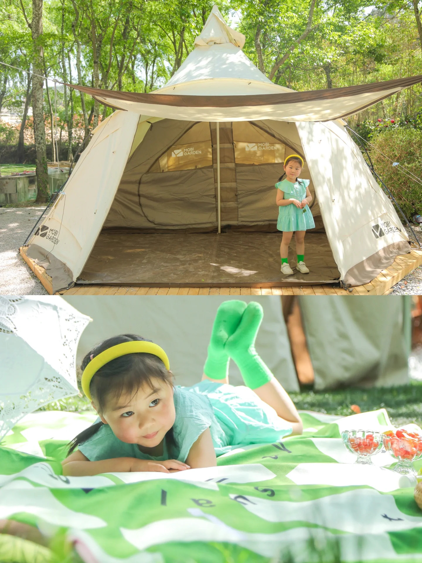 🌳营位:有尖塔帐篷、三角木屋、户外多功能帐篷288/8-10人。