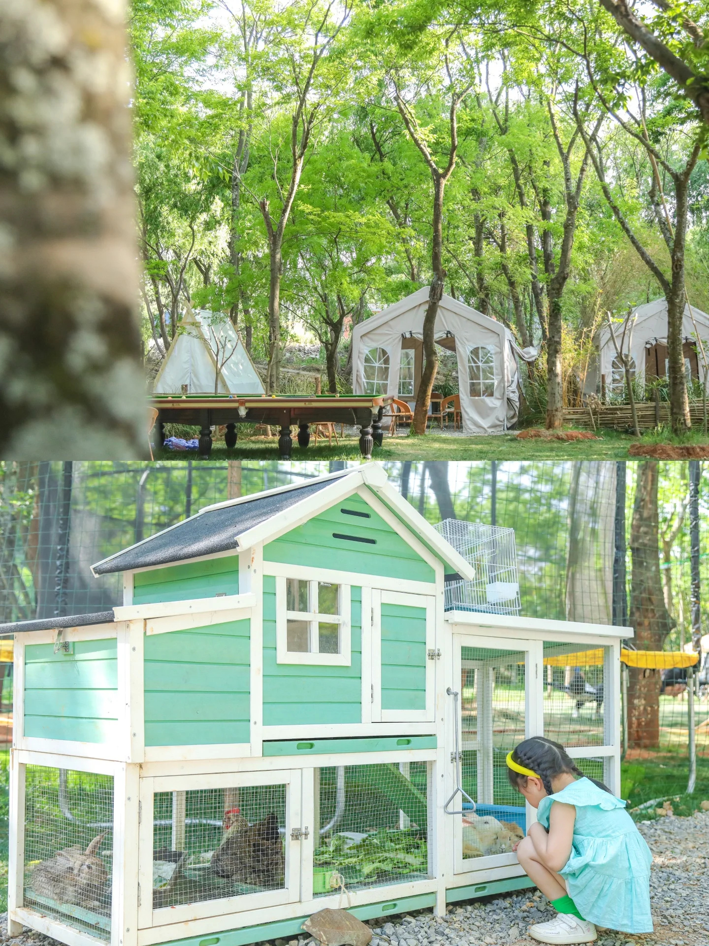 🏕️简介:营地位于盘龙区双龙街道前卫屯村,独辟山间林地,树木郁郁葱葱,营位都建在林荫下。