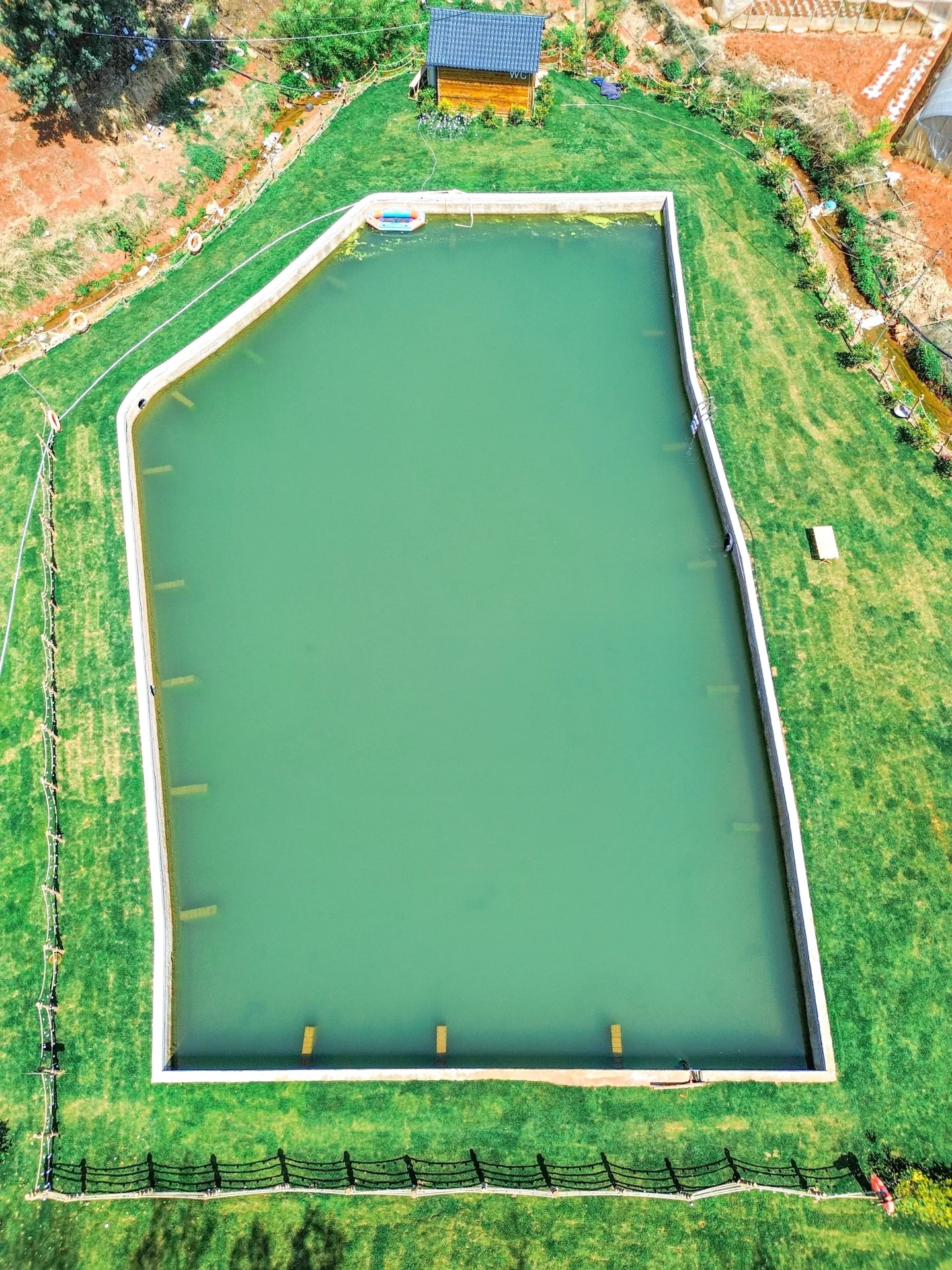 🏕️营地:面积不大,院内有四个多峰帐篷,两个池塘,吧台,造景的小船。