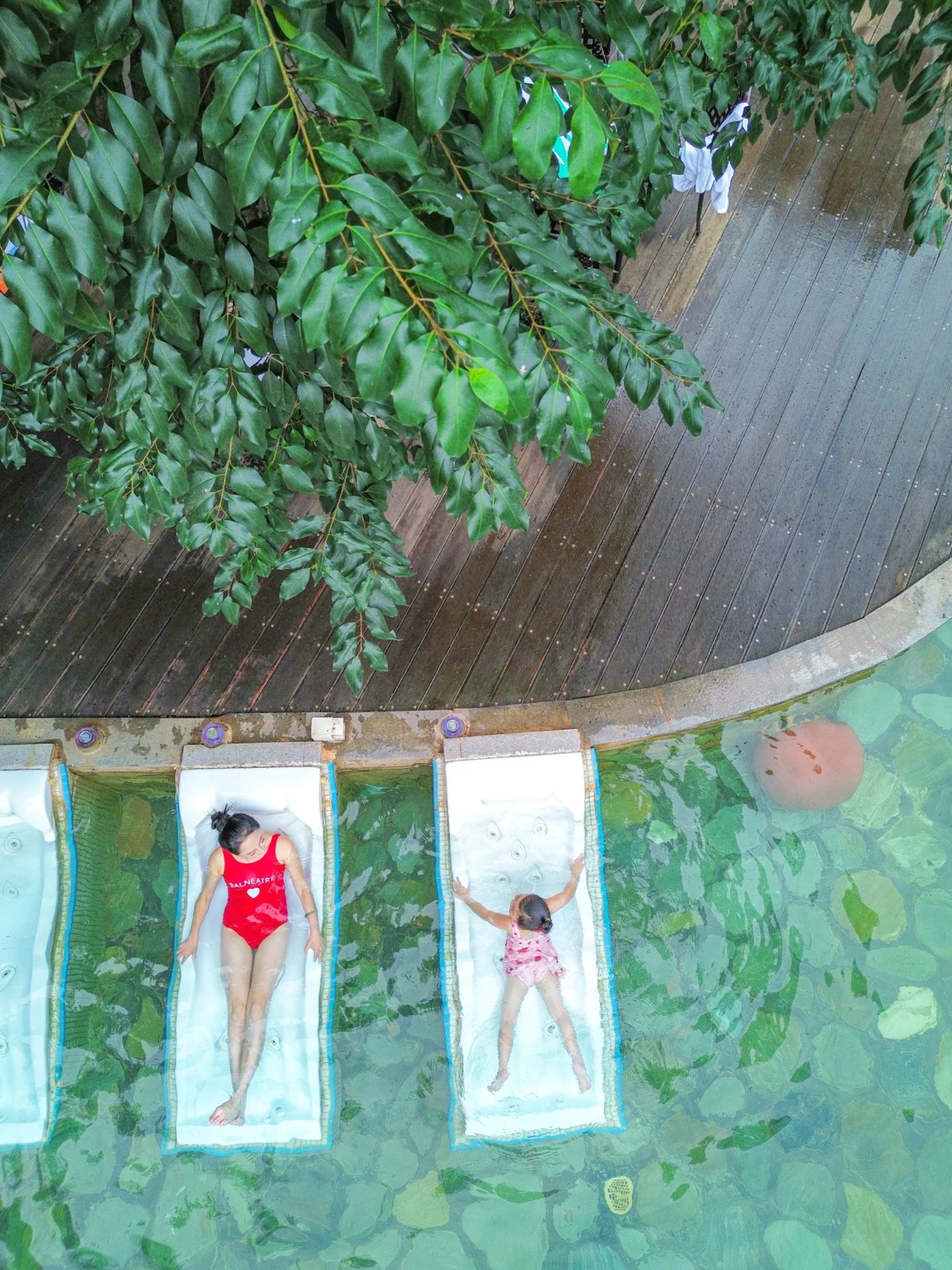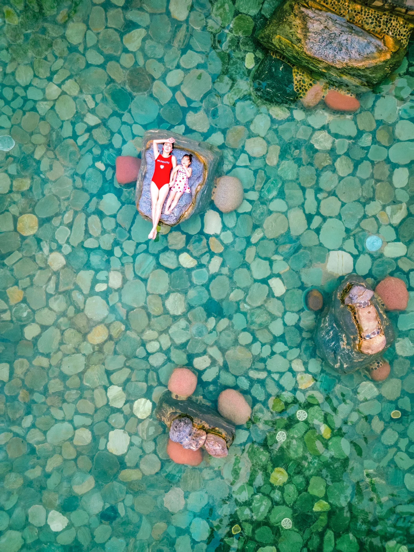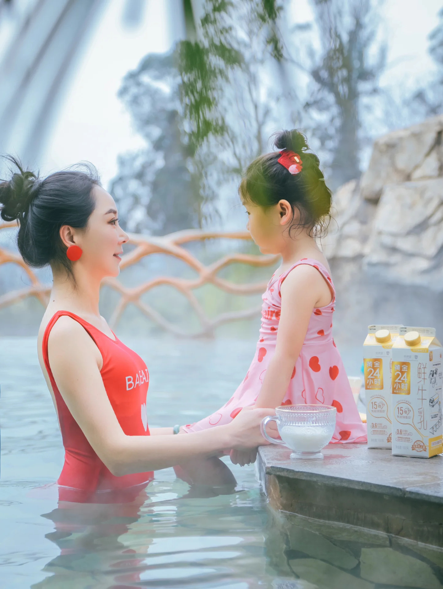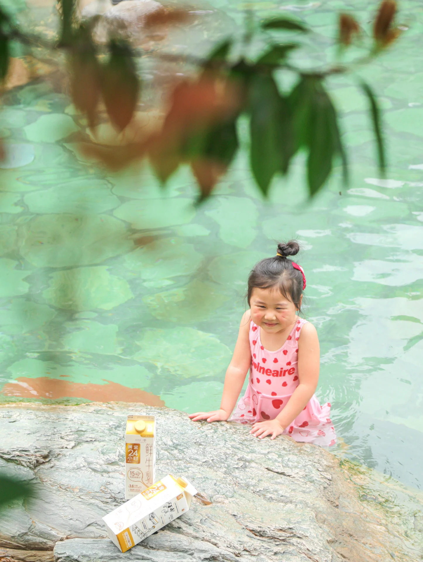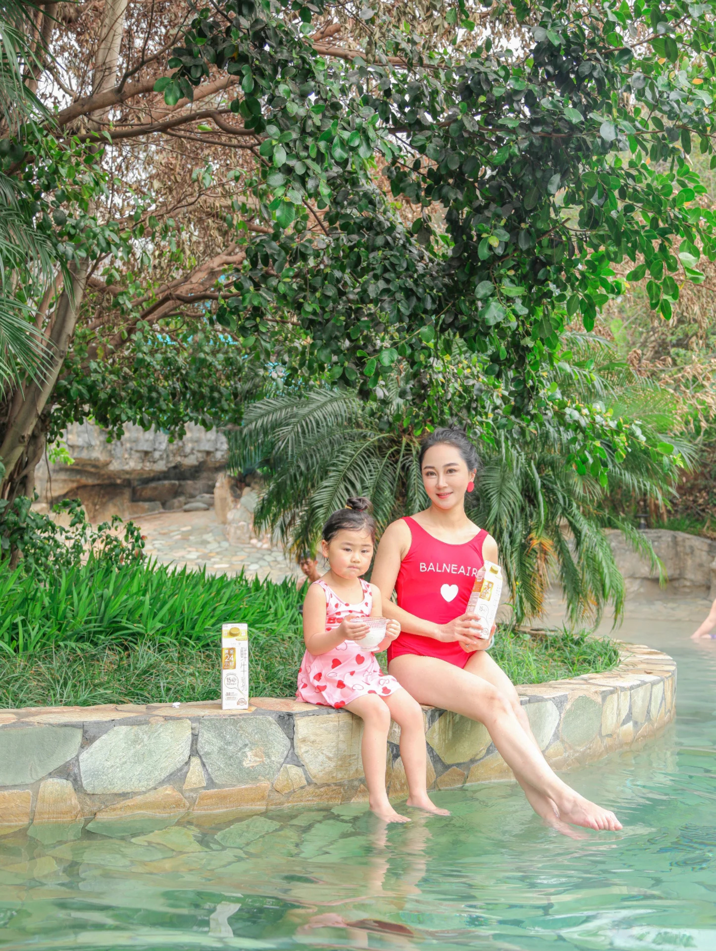我和妈妈穿上了亲子泳装,泳衣颜色可可爱爱,一跳下水裙䙓就会飘起来,好穿又好看,其他小女孩看见不要太羡慕。