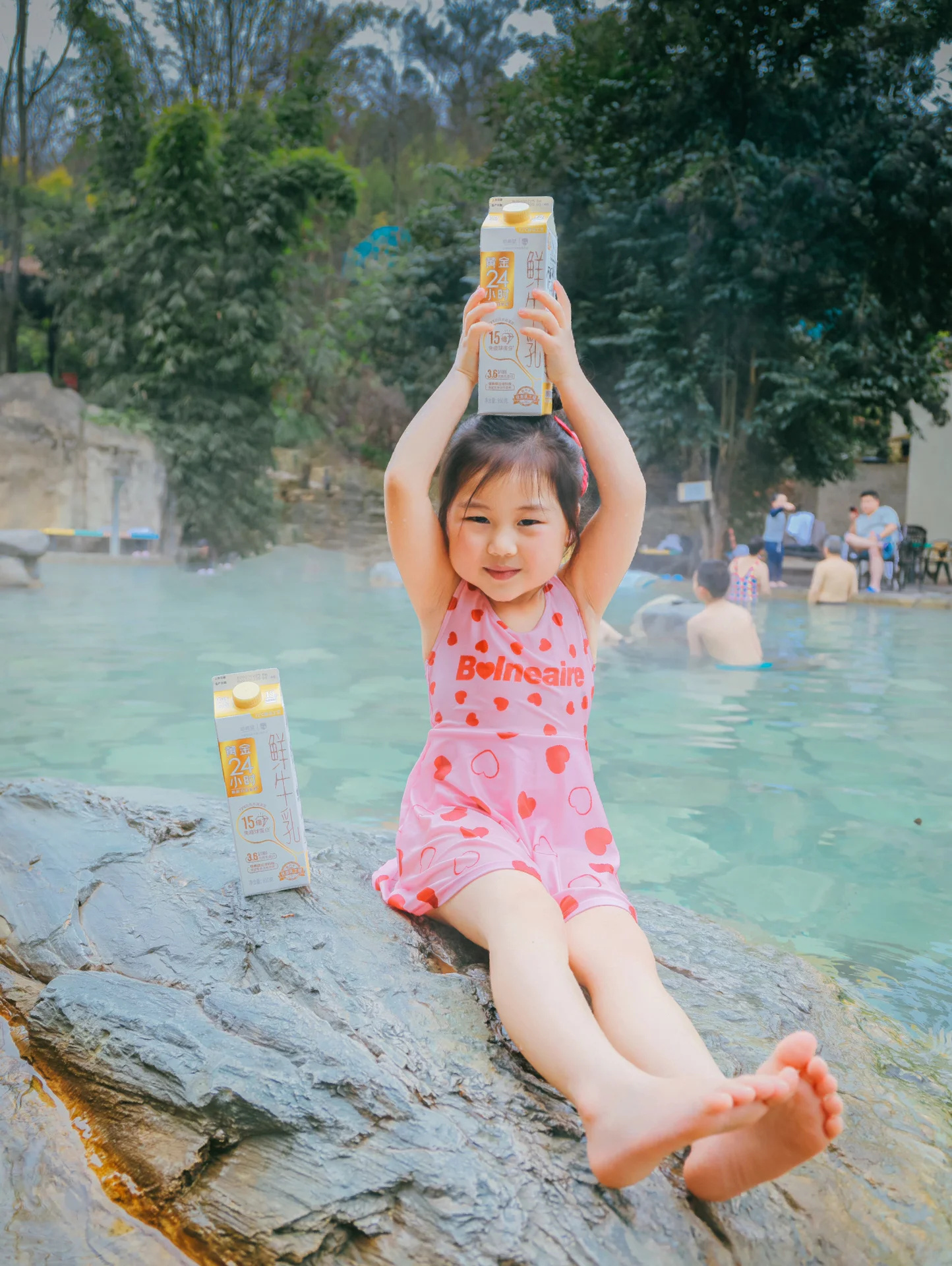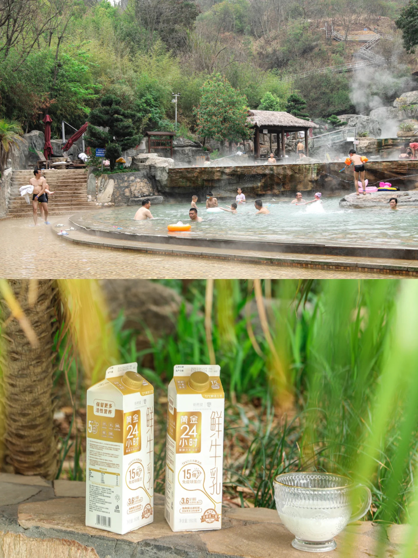 旁边有五个小池:牛奶、玫瑰、三七、红酒…