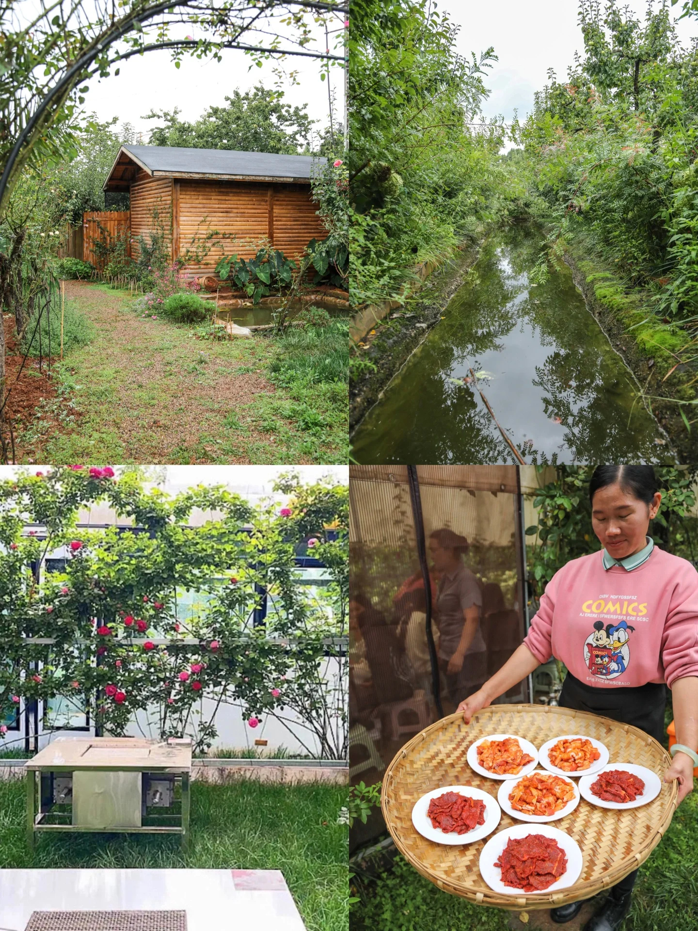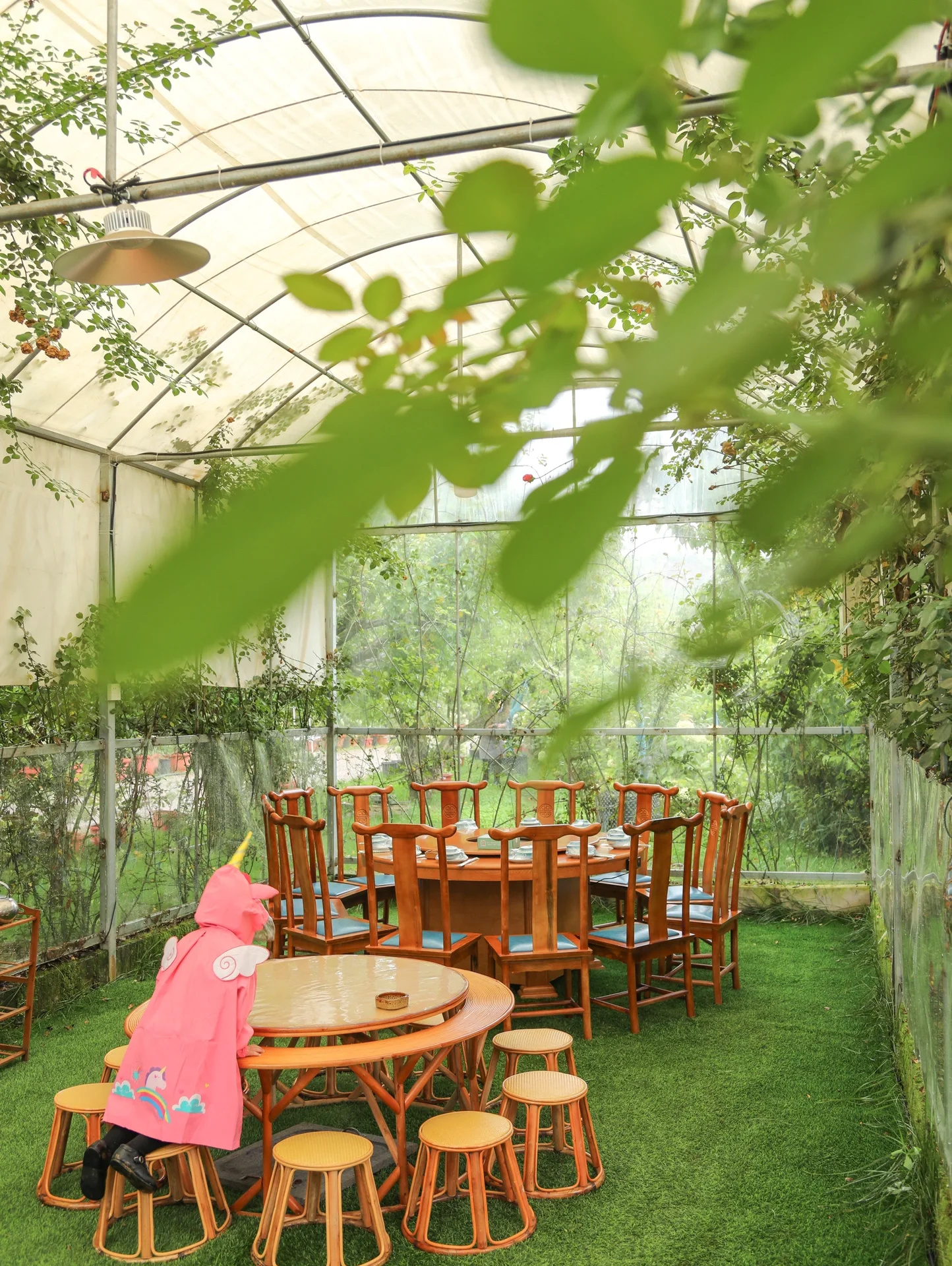 🏡林间建一个一个的大棚就是用餐的地方,zui大的大棚内可容纳三桌,四周月季环绕,遮风避雨的同时还可闻着花香用餐。